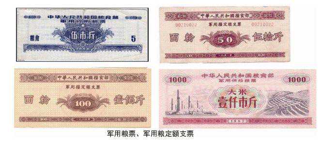 中华人民共和国成立后,1951年由中央人民政府财政部印制“军用支粮证”,即行军粮票,是中华人民共和国成立后最早的军用粮票。此后,从1957至2000年,粮食部、商业部、国内贸易部和国家粮食局先后9次印刷、发行过不同版面的军粮票。其中,1957年和1958年,粮食部正式印制发行“军用粮定额支票”,品种有面粉、大米、粗粮、马料4种,面额分别为50斤、100斤、1000斤、5000斤,票面有编号,是部队领粮、领料的凭证。为了方便领薪金的军官和军队在编职工购粮,1960年又印制了“军用价购粮票”。香河流通过的军用粮票主要有下面4种。1954年,河北省发行第一套地方粮票。之后,从1955年起至1980年又陆续发行6套地方粮票。至1992年,历时38年,粮票停止流通。