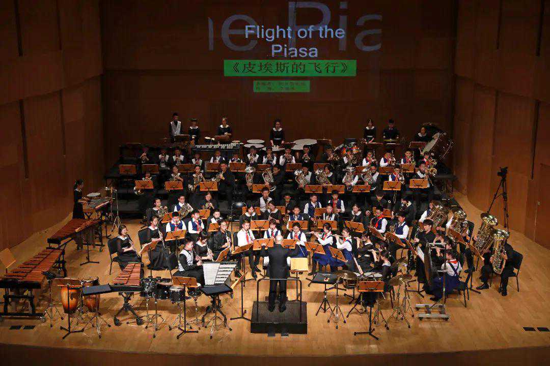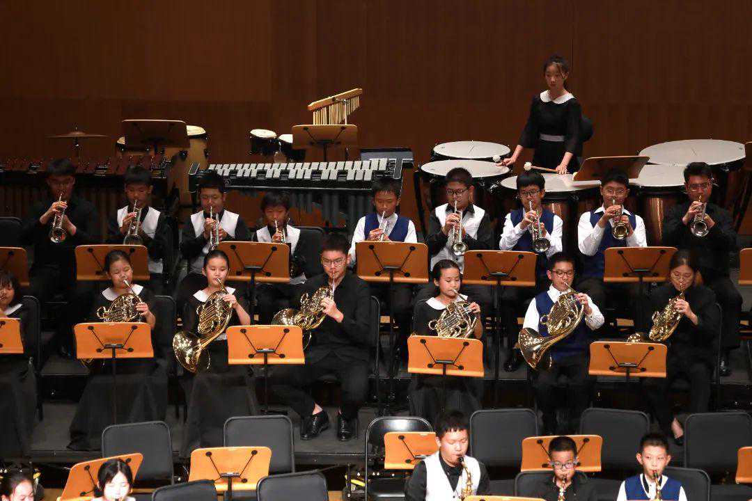 活动现场,从《皮埃斯的飞行》到打击乐三重奏与管乐团的《Percussionissimo》,从单簧管长笛二重奏与乐队的《匈牙利幻想曲》再到大家耳熟能详的《孤勇者》,小乐手们用灵动的演奏将乐曲丰富的意境完美呈现,充分展现出艺术的感染力。