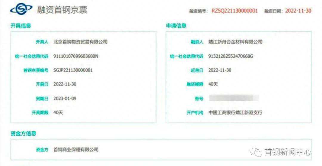 2022年11月30日,首钢集团发布消息,首钢集团供应链金融平台正式上线运营,当天首钢物贸公司在首钢供应链金融平台上开出了首张“首钢京票”,面值2000万元。