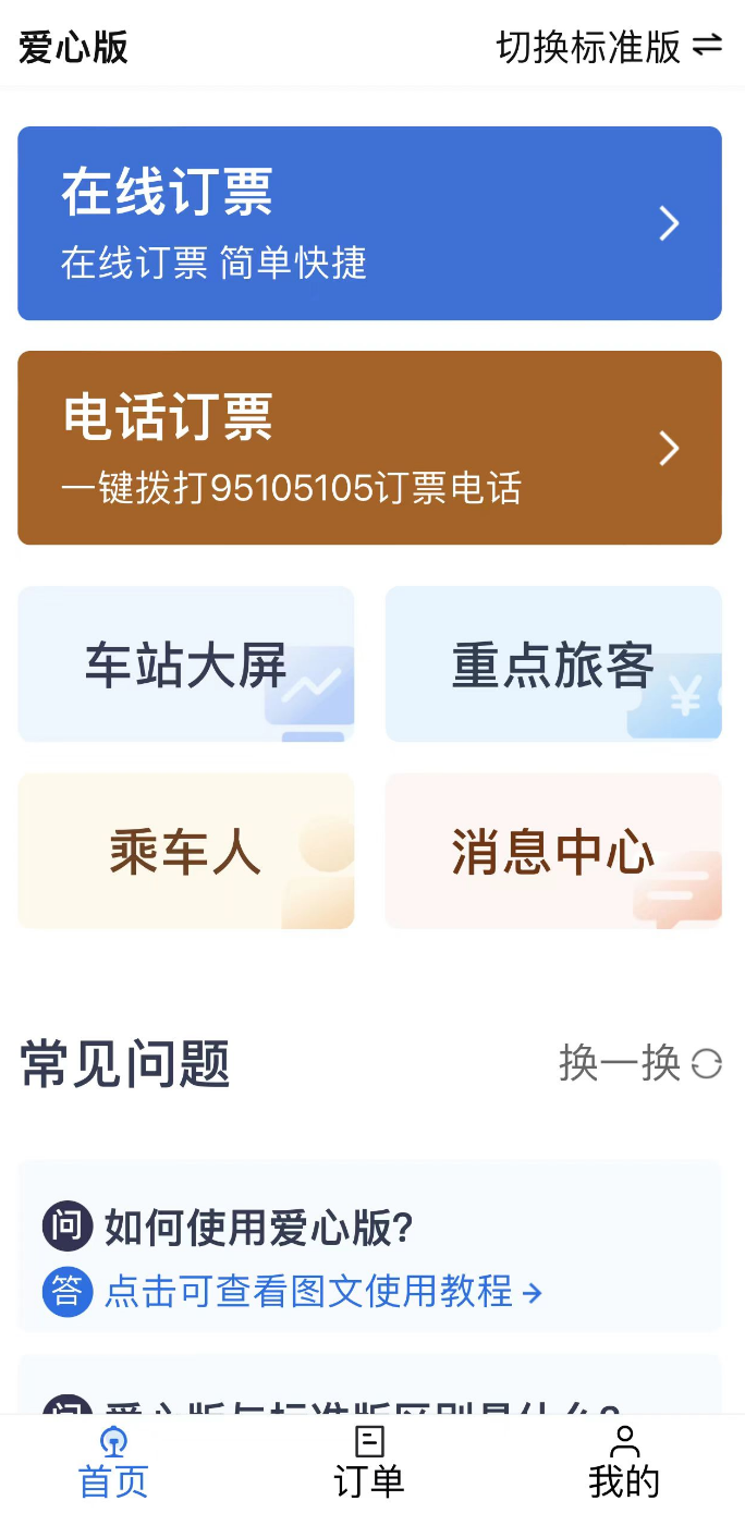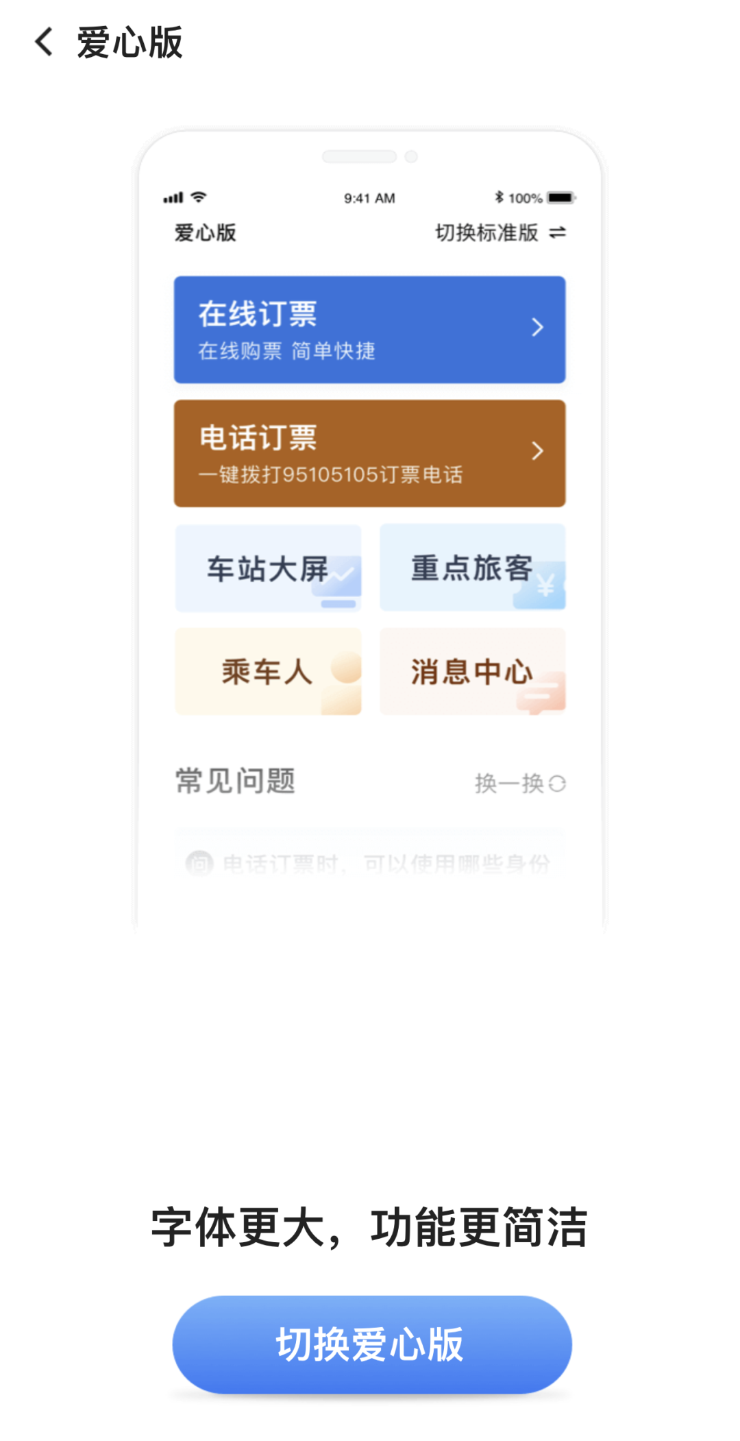 铁路12306App“爱心版”
