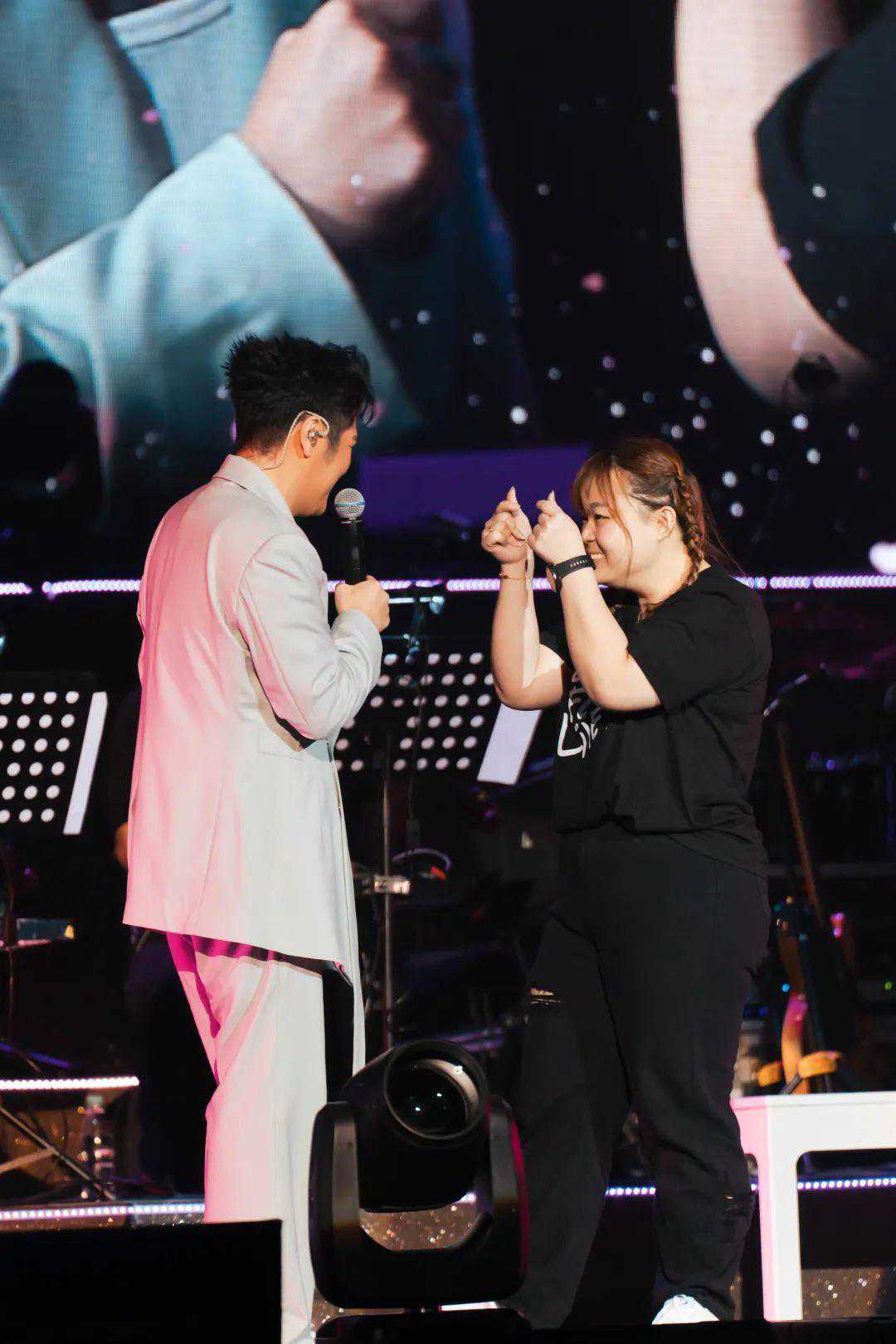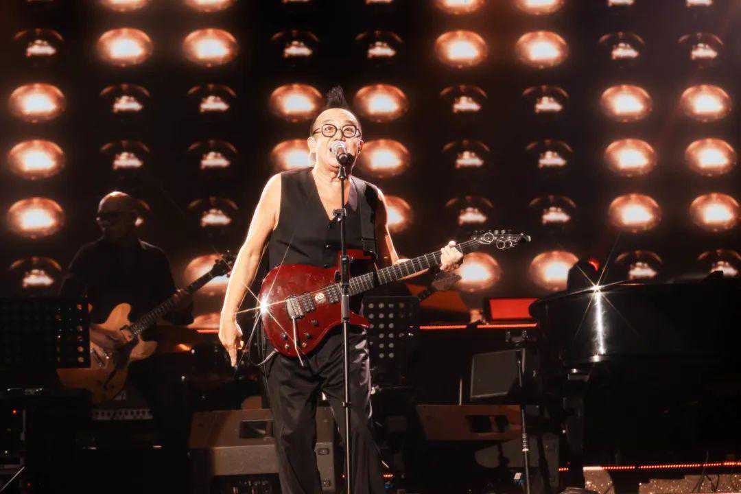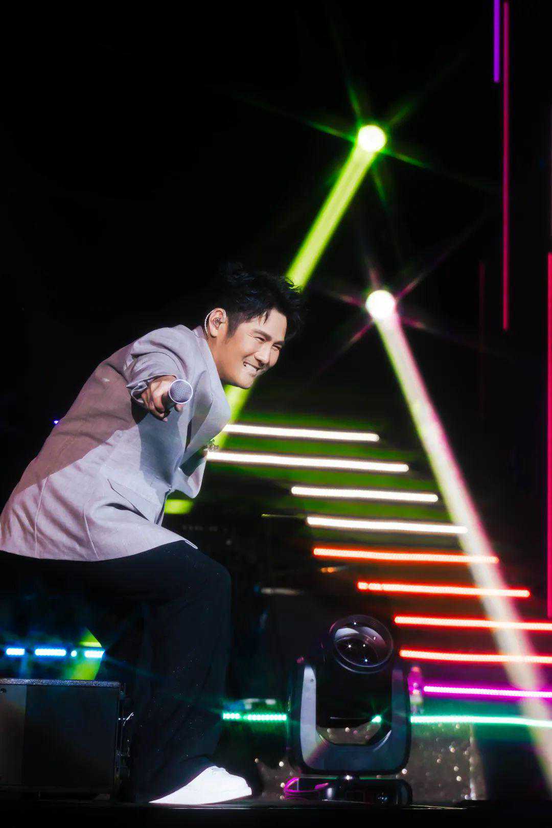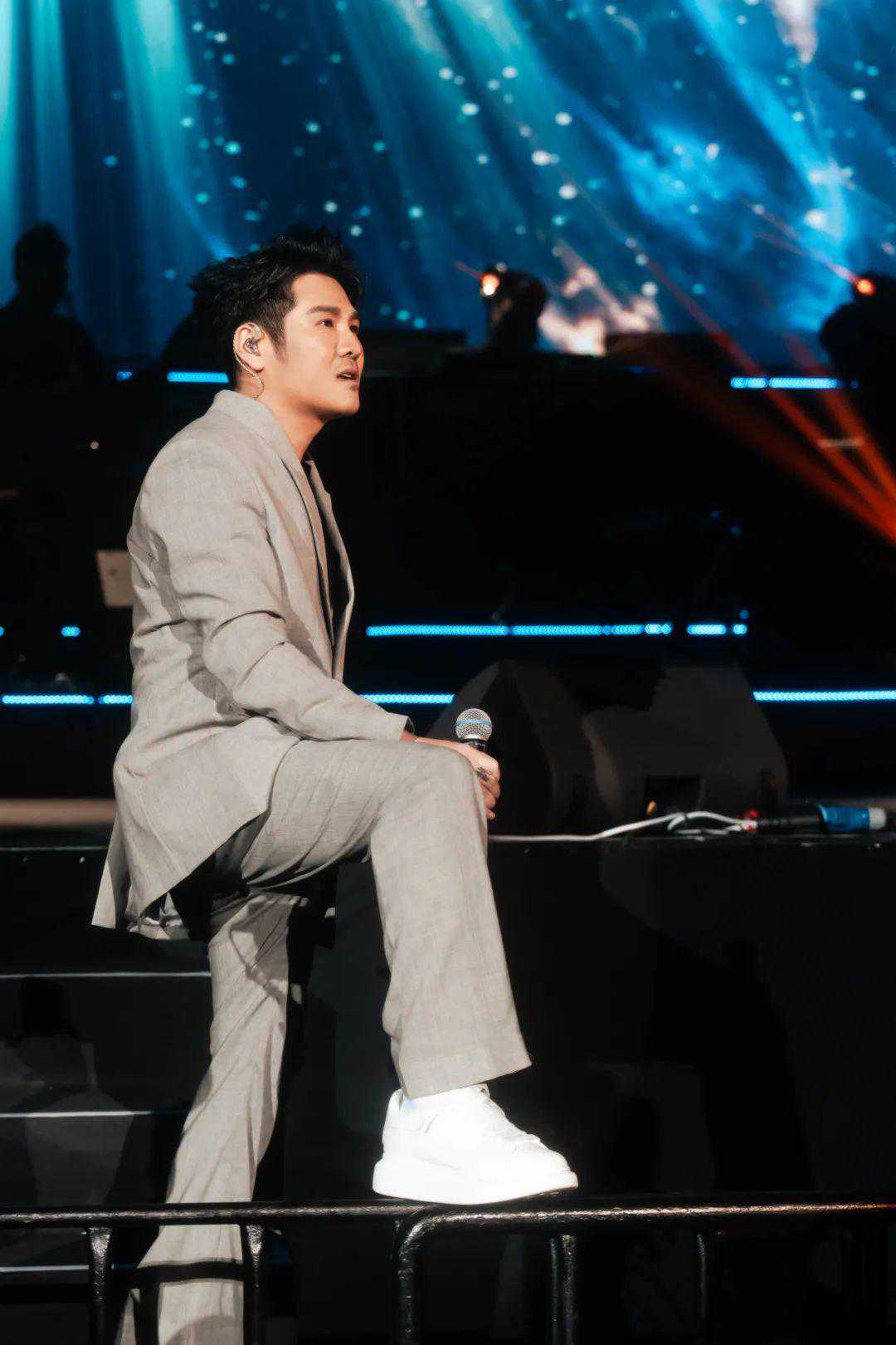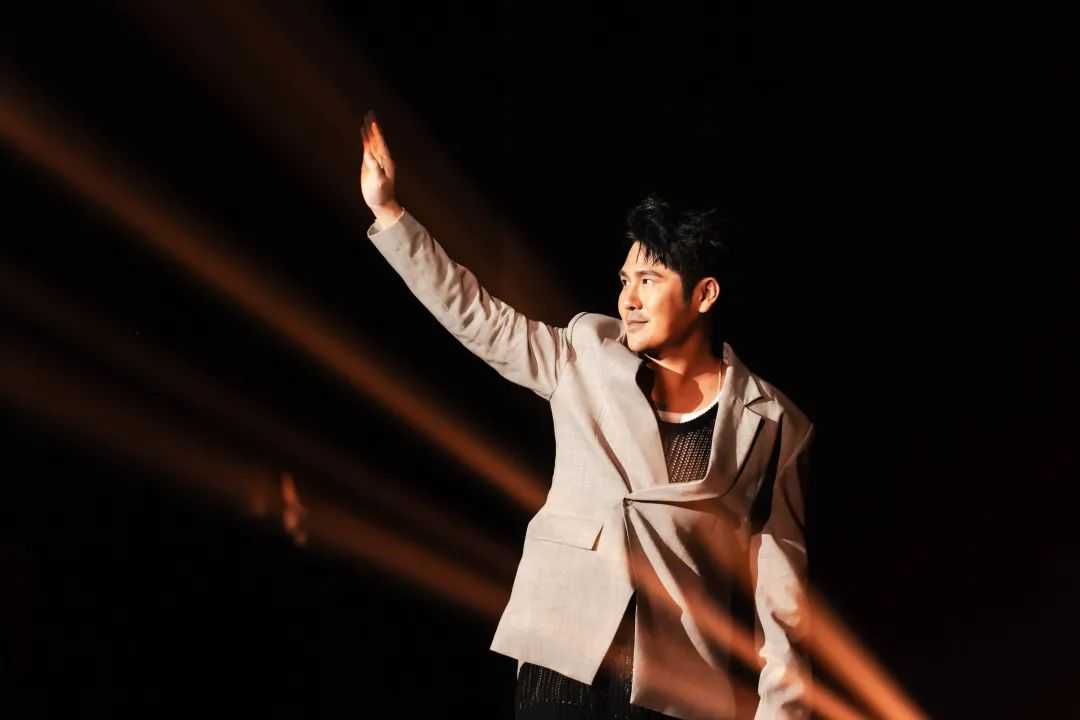 他也一改近期忧郁阴霾的形象,整个人变得活泼又调皮,一时作势要跳下舞台,一时又佯装要把墨镜丢下台,期间不忘自我调侃:“为什么我的声音会那么像志伟哥的?曾志伟大哥没有来,所以我可以开玩笑。”
