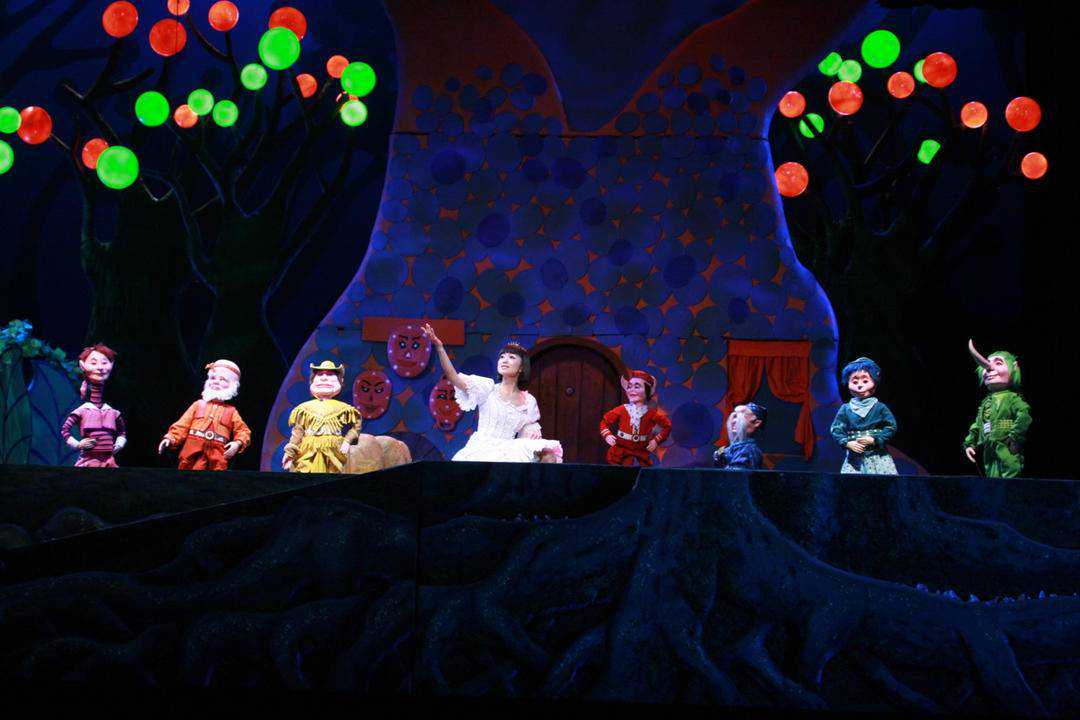 《白雪公主》是扬州杖头木偶首部真正意义上的人偶同台剧目,该剧首创儿童剧真人+木偶+动漫+场景的卡通偶形动漫儿童剧形式,演员造型突出动漫卡通特征,音乐主打童谣风格,服装华美,道具逼真,舞美现代,整台演出美轮美奂,推出后受到全国观众广泛欢迎,目前已演出2000余场,曾获江苏省第六届精神文明建设“五个一工程”奖、第五届江苏省戏剧节“优秀剧目一等奖”、江苏省舞台艺术“精品工程”奖、第三届全国木偶皮影“金狮奖”大赛“金奖”等荣誉。为了适应小剧场演出需求,主创团队深刻把握《白雪公主》的看点、亮点、重点,根据舞台场景、剧情节奏和小剧场特点,强化该剧音乐剧风格与审美趋向,恰到好处地调度真人演员、杖头木偶,使得白雪公主和小矮人始终在恰当的融合点完成自己的角色和任务,故事本体和舞台表演都达到了极高的契合度,使之成为一台真正意义上的小剧场剧目。