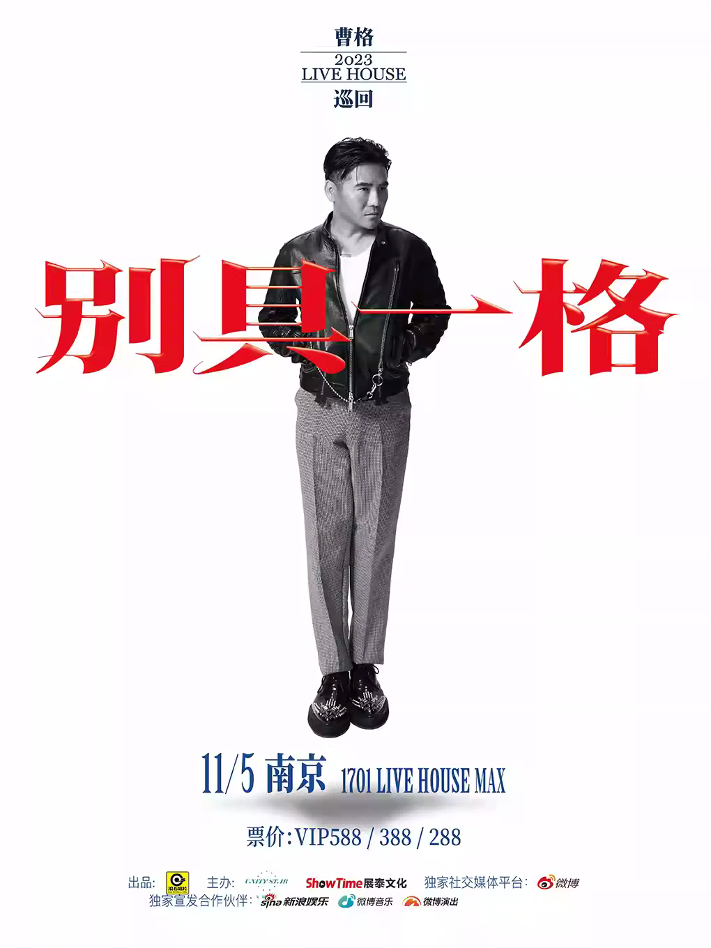 从“我是歌手”到“爸爸去哪”,曹格给予了我们多面的惊喜!「别具一格」曹格2023LiveHouse巡回演唱会南京站官宣定档!11月5日,2023曹格南京演唱会将在1701LiveHouseMax精彩开唱,金曲歌王再度开麦,一起来奔赴一场“别具一格”的音乐之旅吧!