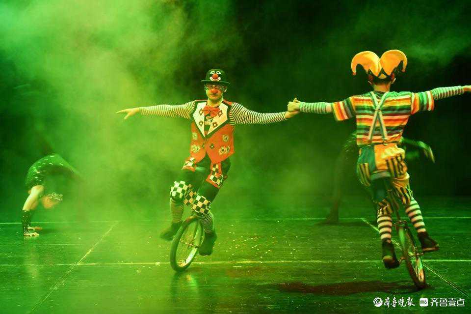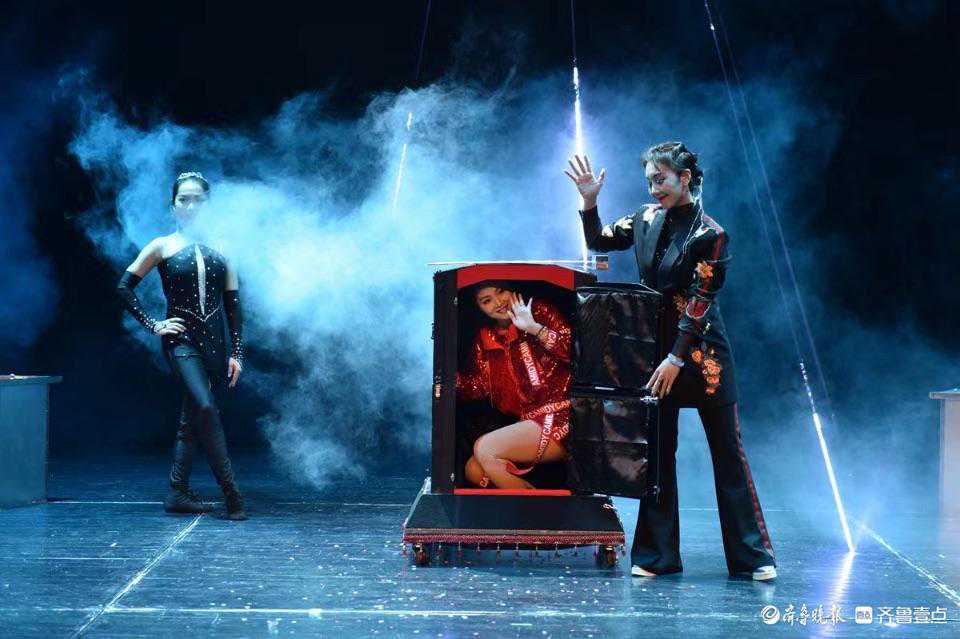 济南市杂技团迎新元旦晚会《魔法学院》在山东省会大剧院上演,整场演出由十余个优秀节目组成,包括《双人技巧——兄弟》《超乎想象》和《柔术》等。这些节目涵盖了魔术杂技的多个类型,滑稽节目更是贯穿全场。王平摄