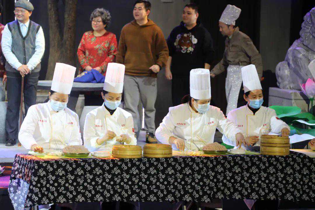 节目接近尾声,伴随着音乐响起,乐池缓缓升起,小笼师傅们渐渐“浮出水面”。为了更真实、直观地呈现南翔小笼馒头制作技艺,现场还邀请到古猗园餐厅的小笼师傅现场展示。“登上舞台展示小笼制作是第一次,彩排时还有点紧张的,但当拿起小笼皮开始包就放松了下来,希望能有更多人了解南翔小笼、爱上南翔小笼。”古猗园餐厅副总经理张小苹说。