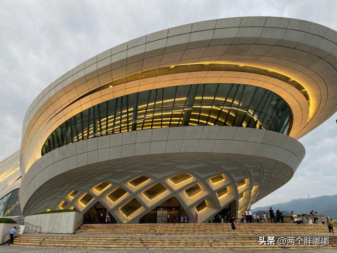 梅溪湖国际文化艺术中心矗立在梅溪湖畔,宛如芙蓉花绽放,有大剧院和艺术馆两大主体功能,为扎哈.哈迪德设计作品,艺术感满满,氛围感十足。