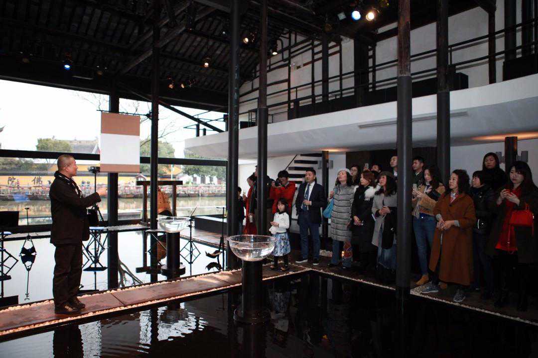 缘于一次朱家角的采风,当时谭盾先生正在朱家角的河岸上,听到对岸圆津禅院的僧人们做晚课时的吟唱,宁静中产生一种幻觉,仿佛听到了音乐圣人巴赫在鸣唱。冥冥之中,他觉得应该在这座三百年历史的粮仓与对岸的古老禅寺中聚合一种氛围,让大家在这里听水,听东方,也听西方,更能听到自己。运用“水乐”这项更智慧、更艺术化和有想象力的方法激起人们的环保意识,回到人的本真。谭盾先生在这水上人间听到了水的音律,寻到了水的答案。