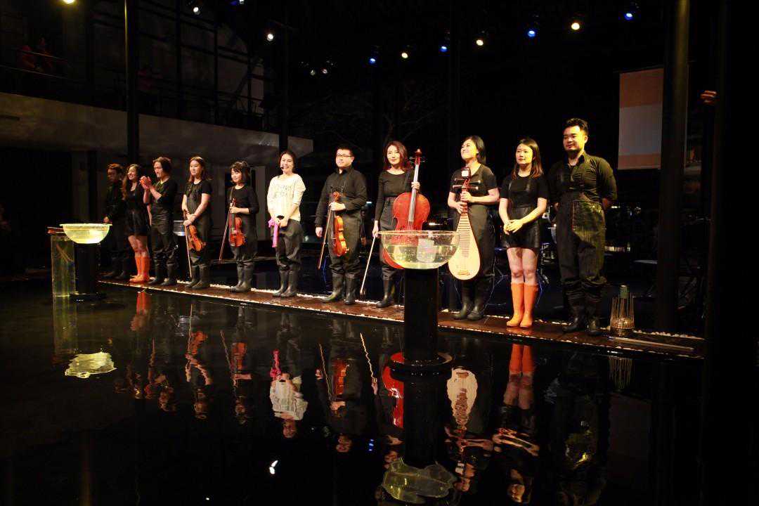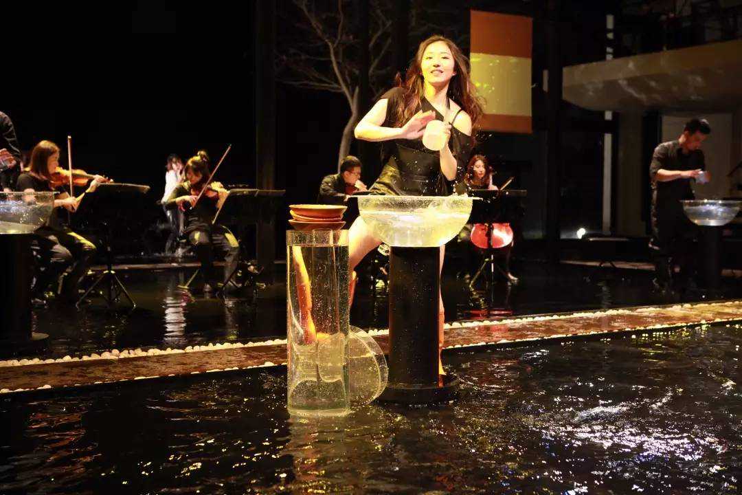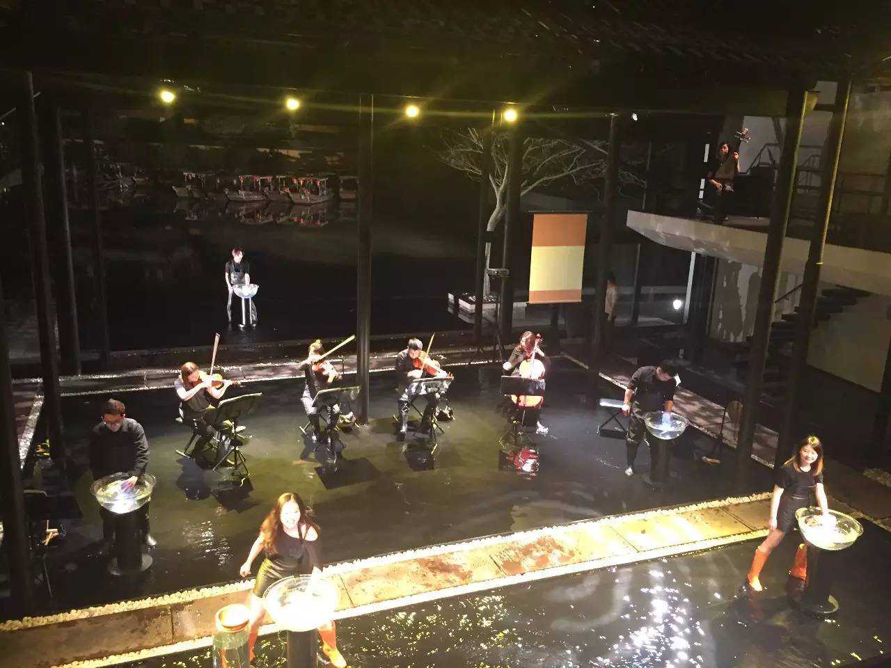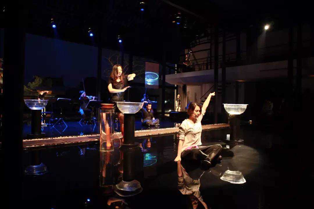 太多的惊喜,带动着每位听者的情绪,从击打钢柱的躁动到聆听水珠滴落的静谧,从天忽降的一注水又冲破了所有静意,引出了一幕欢腾,欢腾中糅合了西洋的弦乐重奏与东方的古琴弹拨,通俗的流行表达与高雅的端庄演绎,器乐的循规律动与水声的欢腾跳乐,多元而饱满,欢乐结尾处所有演者面水而立,音乐戛然而止,又见滴水的细声,而水之对面飘起多盏明灯,仿佛预示着下一个轮回……