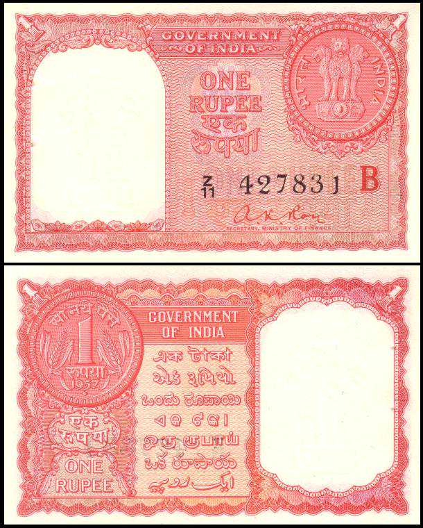 然后分工不变,印度政府继续印1卢比,印度储备银行印其他面额的。过渡期持续了10年,到1957年4月28日,印度独立前带有英国君主的纸币就全部正式作废了。