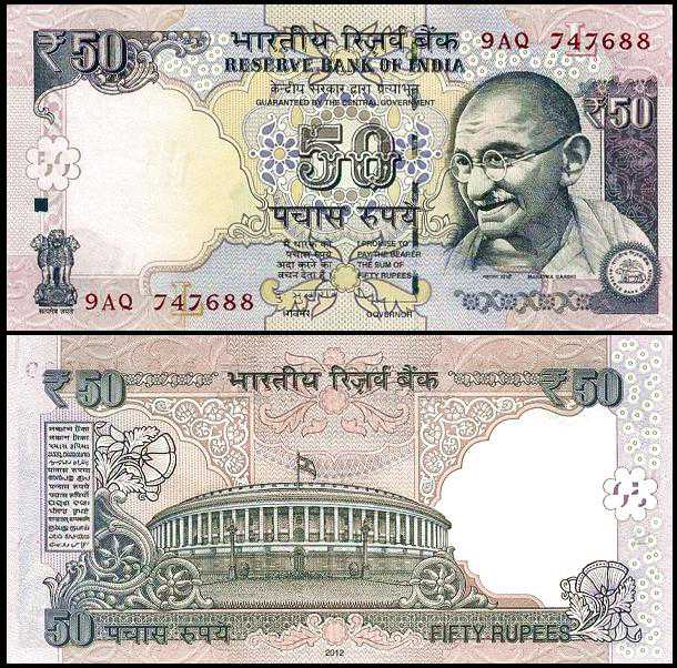 圣雄甘地新系列,2016至今发行流通,这版纸币甘地的头像挪到了中间的位置,所以也叫“甘地在中间”系列。