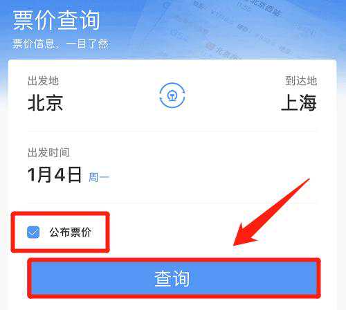 公布票价在哪里看呢?以铁路12306APP为例。
