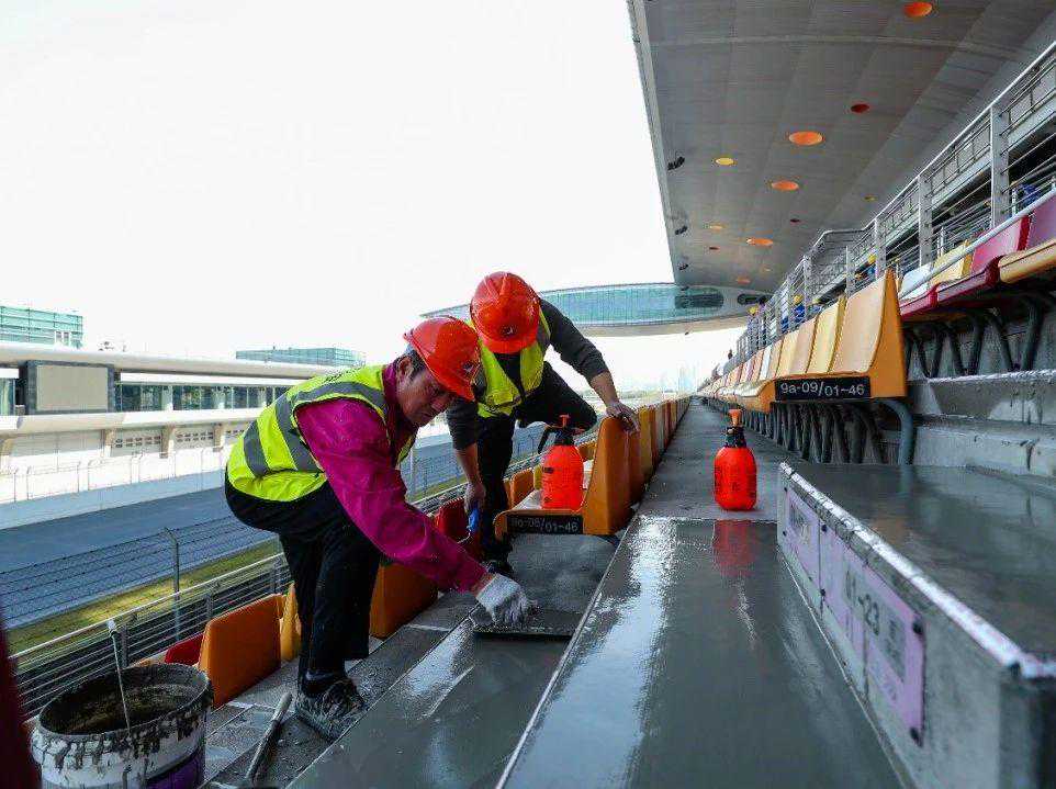 除开全新的赛场门面,作为重头戏的赛道维护升级,自然必不可少。为了保障F1中国大奖赛的顺利、安全和有序进行,“上”赛道的赛场字幕显示系统、时速标牌等方面都作了更新,备受期待的B、E看台修缮项目进程也可谓有条不紊,将于今年11月完工。不过赛道修缮中最大的亮点,还要数赛道表面的沥青。