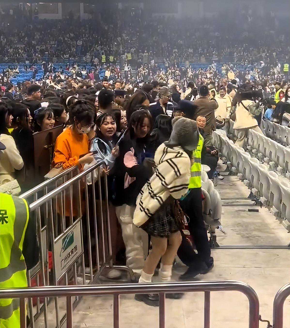 不仅如此,演唱会现场秩序相当混乱,因为内场很多座位都是空的,后排观众集体涌入内场,保安拦都拦不住,更有女生被挤到跌倒,冲破保安关卡后,他们不管不顾,找到位置就坐,有现场粉丝表示,自己花1000多买的票,结果旁边的女生只花了200多。