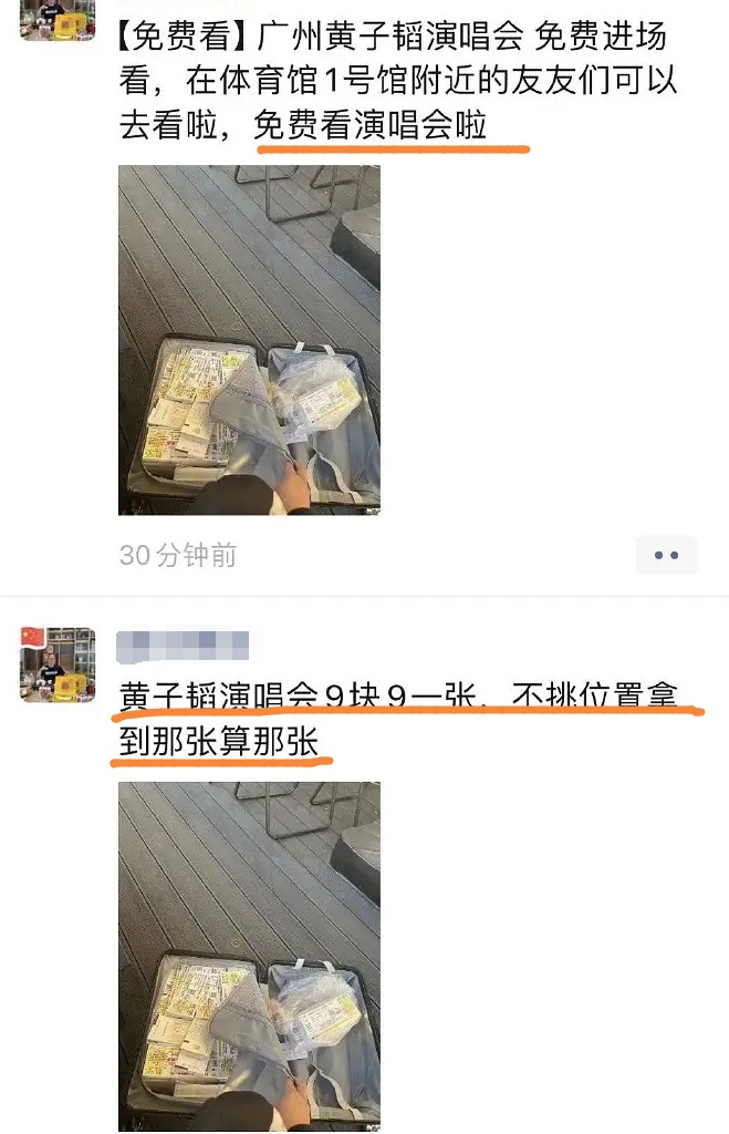 还有传黄子韬演唱会场馆坐了不到一半的人,后面没有门票也可以免费进去,有的网友甚至只花了几十,几百块钱就买到了门票,和原价相差甚多。