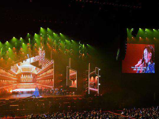 开场环节,舞台上营造出像魔幻电影的氛围,张靓颖躺在水晶棺里演唱了歌曲《顺流而下》,寓意跟过去告别。接下来的几首歌,她将高难度的演唱技巧运用得出神入化,再现“海豚音公主”的风采。