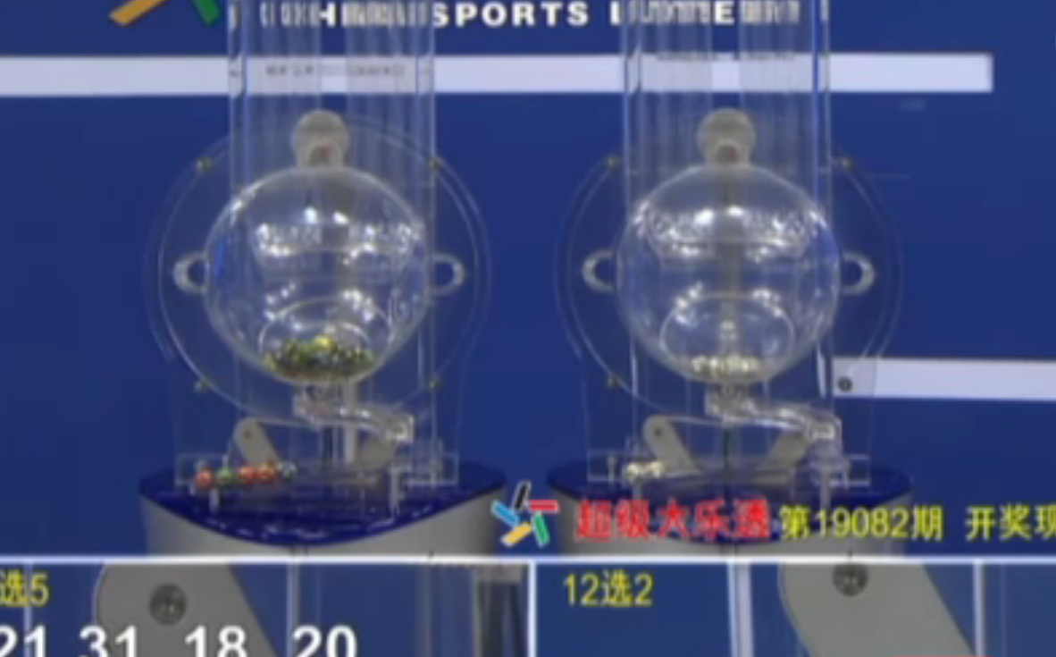 电视中的圆筒里滚出第一个前区号码球,显示是21,接来下是31、18和20。