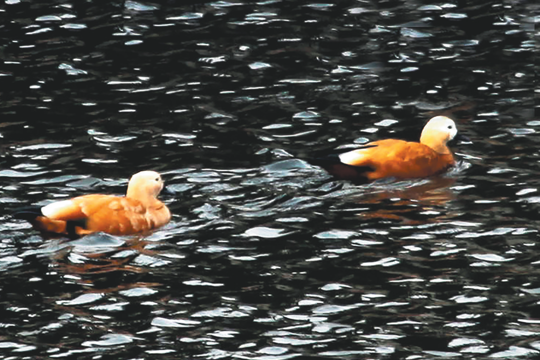 2月8日,在沈阳浑河流域,一群迁徙野鸭在冰水交融的河面上休息、觅食、嬉戏。
