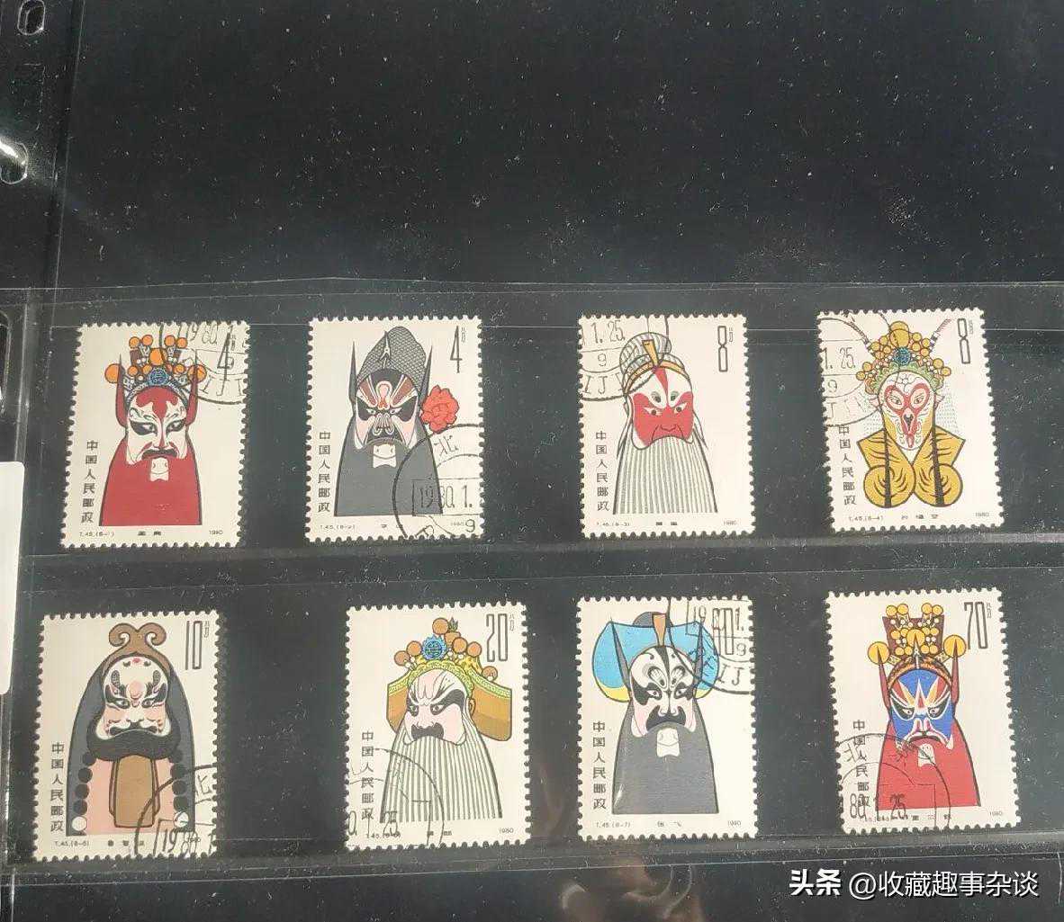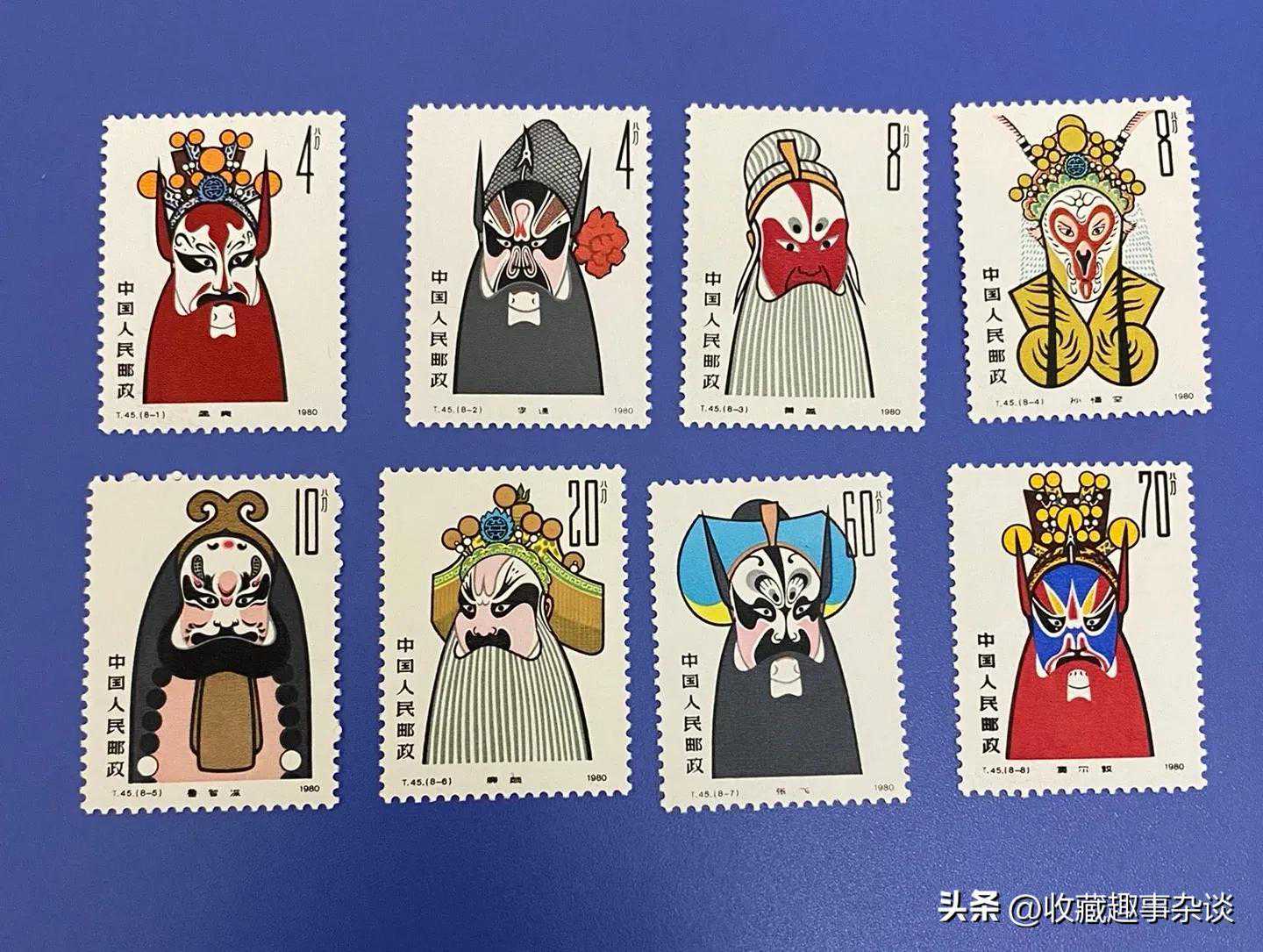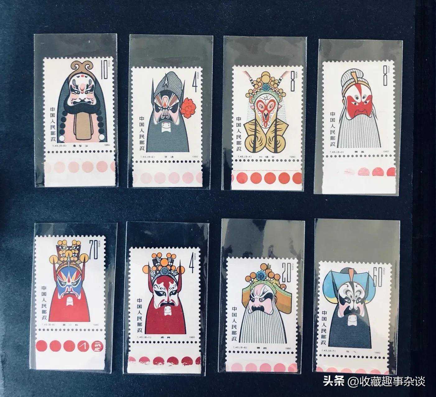 2、上图二为厂铭脸谱邮票,与色标邮票一样的道理,由于存起来少,因此价格很高,上图这套,价格大概在800元左右。