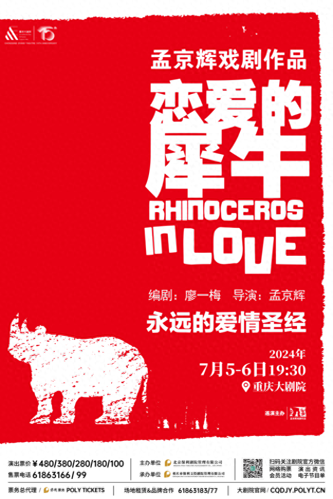 孟京辉导演经典戏剧作品《恋爱的犀牛》再度归来!4月8日,上游新闻记者从重庆大剧院获悉,7月5日至6日,这部被誉为“当代中国剧坛奇迹”“永远的爱情圣经”“先锋戏剧领军之作”的戏剧,将在重庆大剧院上演。目前该剧已经重磅开票。