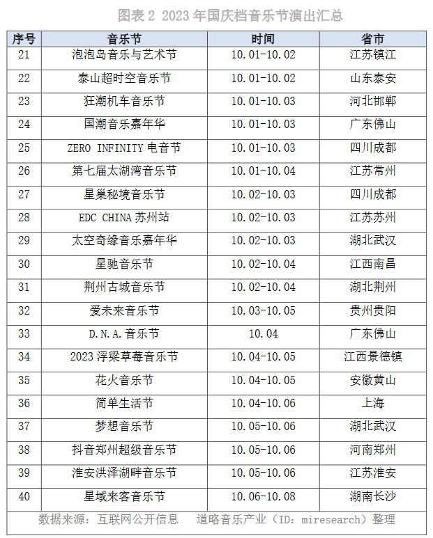 而无论是地方文旅牵头打造,还是音乐节主办方主动进入,“音乐节+文旅”这一好牌已在今年上半年得到过良好验证。例如迷笛音乐节正值30周年,今年上半年就落地了海口、烟台、海拉尔多地,据统计,分别为当地或直接或间接带来约1亿元、15亿元、89.25亿元的文旅收入。相信今年国庆档会表现更强劲。