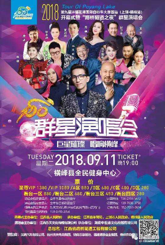 9月11日晚将在可容纳一万名观众的横峰县全民健身中心,举办第九届环鄱阳湖国际自行车大赛首站(上饶·横峰站)开幕式暨“路桥隧道之夜”群星演唱会。晚会邀请了林志炫、腾格尔等重量级明星集聚横峰,群星演唱会将点燃全城激情,为环鄱赛暖场预热。(石艳升)
