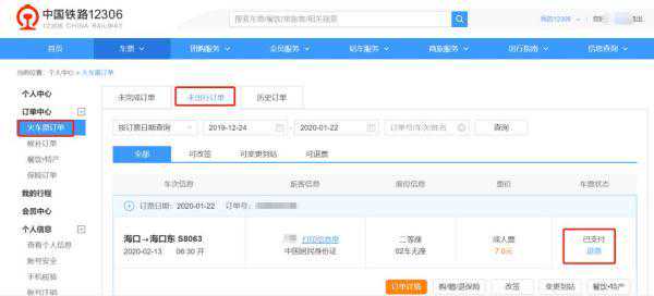 12306.cn退票方法