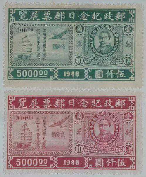 为此,中华邮政又将《邮政纪念日邮票展览》纪念邮票改印墨绿色,分有齿、无齿各一种出售。因此说我国最早的票中票共2枚,颜色分玫瑰红、墨绿色两种,每枚均分有齿和无齿两种,面值都是5000元。值得注意的是此票是由我国著名集邮家吴凤岗先生建议发行并亲自设计的。1948年3月20日,国民时期发行“票中票”票中票以历史事件为背景,以独特的题材形式,于上世纪四十年代初在古巴问世以来,成为邮海艺苑中的奇葩,越来越受到世界各国邮政界的重视。