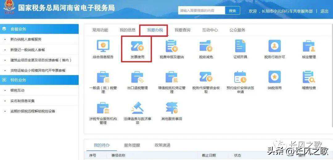 第四步:选择“我要办税”——“发票使用”;