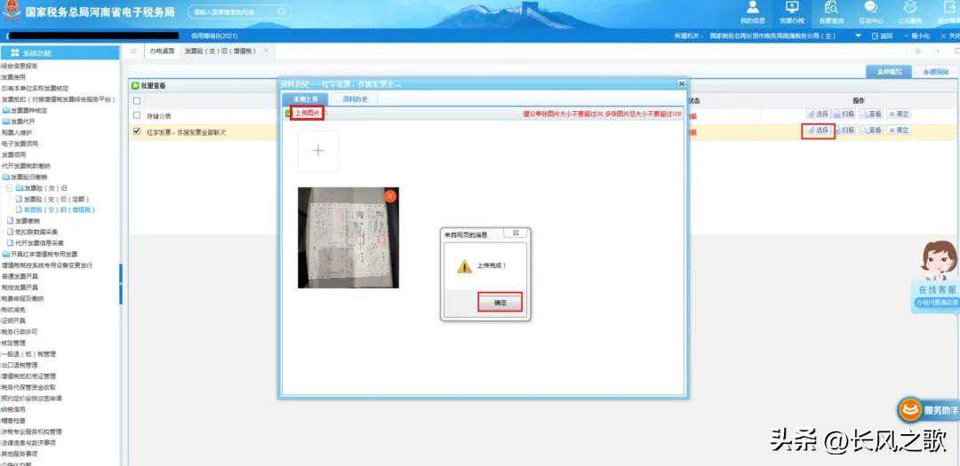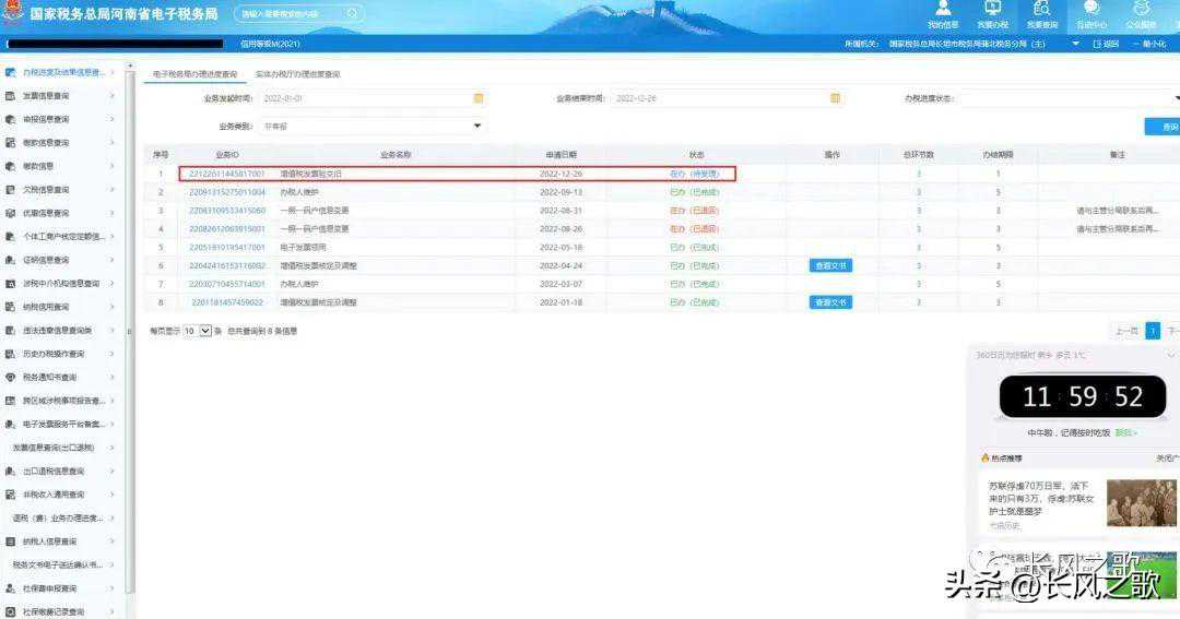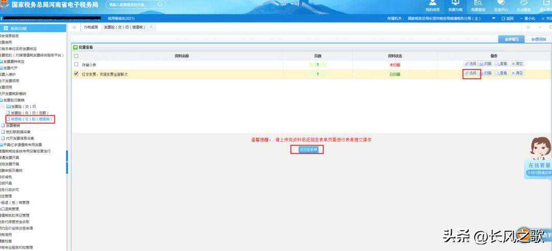 第十三步:最后页面弹出“增值税发票验交旧”“在办(待受理)”字样,表示发票验旧业务提交成功,等待后台审批即可。