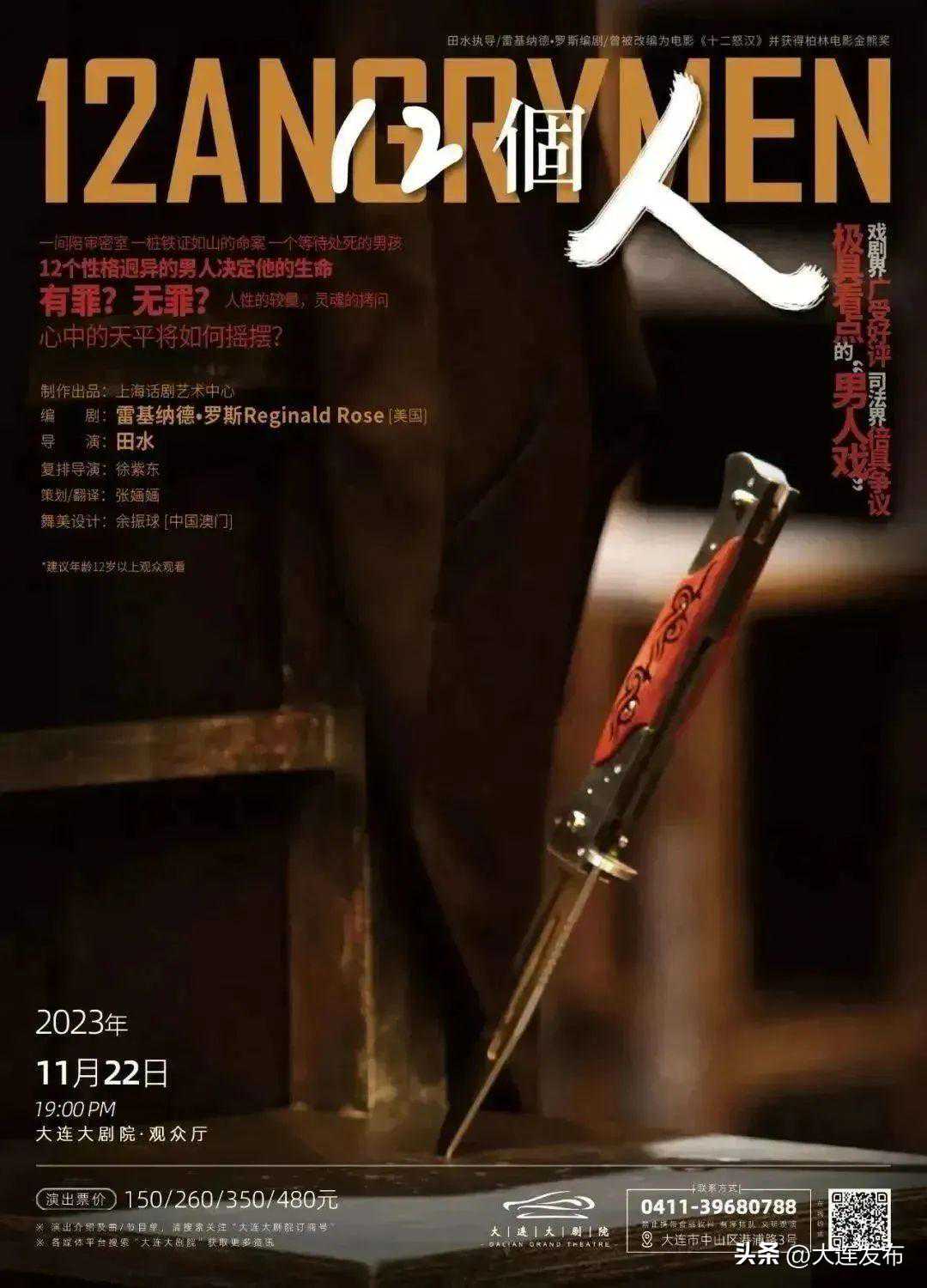 亮点:由上海话剧艺术中心制作出品,美国作家雷基纳德·罗斯编剧、田水执导的话剧《12個人》将在大连大剧院上演。