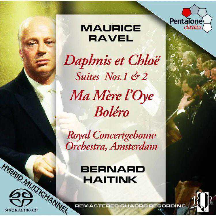 这张专辑由专以制作SACD闻名的荷兰五音唱片公司(PentaTone)出品,其中《达芙妮与克罗埃》由海廷克指挥阿姆斯特丹皇家音乐厅管弦乐团诠释,额外收录的拉威尔《波莱罗》舞曲则由艾度·迪华特(EdoDeWaart)指挥鹿特丹爱乐乐团诠释,当中的管弦音色清晰立体,听感优质。