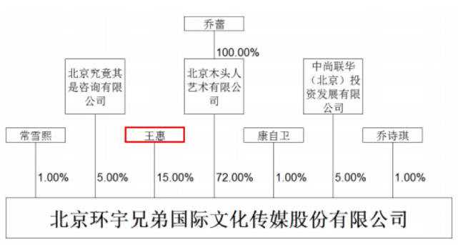王惠也是环宇兄弟的第二大股东,持股比例为15%,以环宇兄弟最新股价7.5元,王惠持有的180万股价值1350万元。