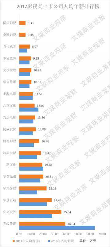 其中提到了2017年万达电影的人均年薪为13.46万元、横店影视的人均年薪为5.3万元、金逸影视的人均年薪为5.35万元。