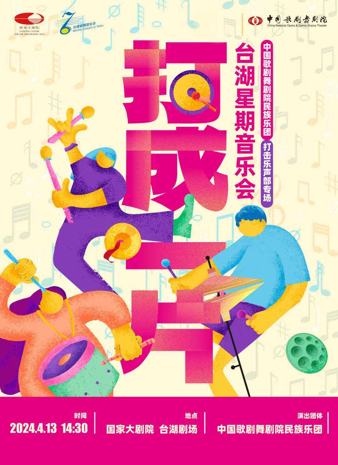 打击乐声部是个庞大的家族,包含了中国民族打击乐、西洋打击乐、戏曲打击乐、世界各民族打击乐多个族群,极为丰富多彩。本场音乐会,中国歌剧舞剧院民族乐团的艺术家将轮番演绎中国大鼓、板鼓、花盆鼓、海浪鼓、雷鼓、手碟、木箱鼓、马林巴、颤音琴、小军鼓、大锣、小锣、铙钹、小镲、沙锤、三角铁、铃鼓、木盒等多样打击乐器,让观众体会到打击乐震撼与精彩的表现力的同时,领略和欣赏到不同的音乐风格。