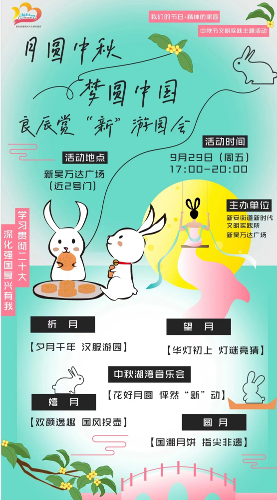 推出西水中秋嘉年华、西水国潮游园会、民乐巡演、精品展览、线上游戏等五大特色主题活动。