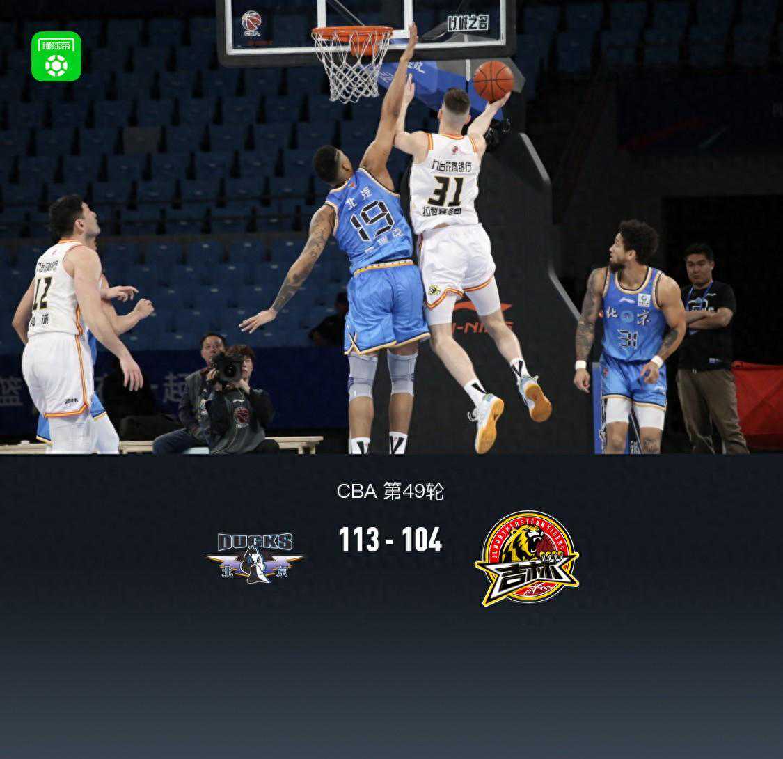 第四节北京方硕拿下9分,吉林姜伟泽拿下15分,最终北京113-104战胜吉林