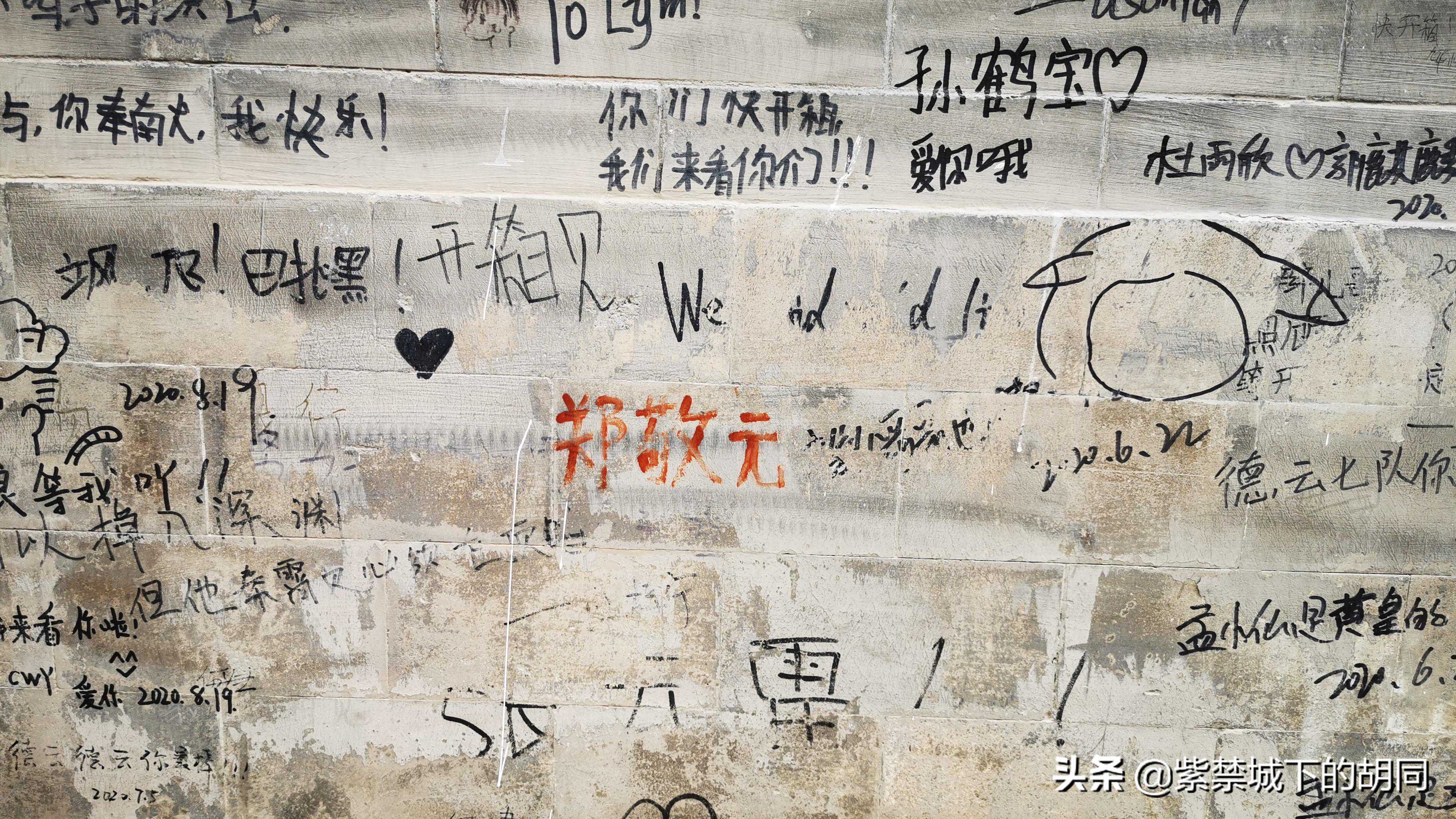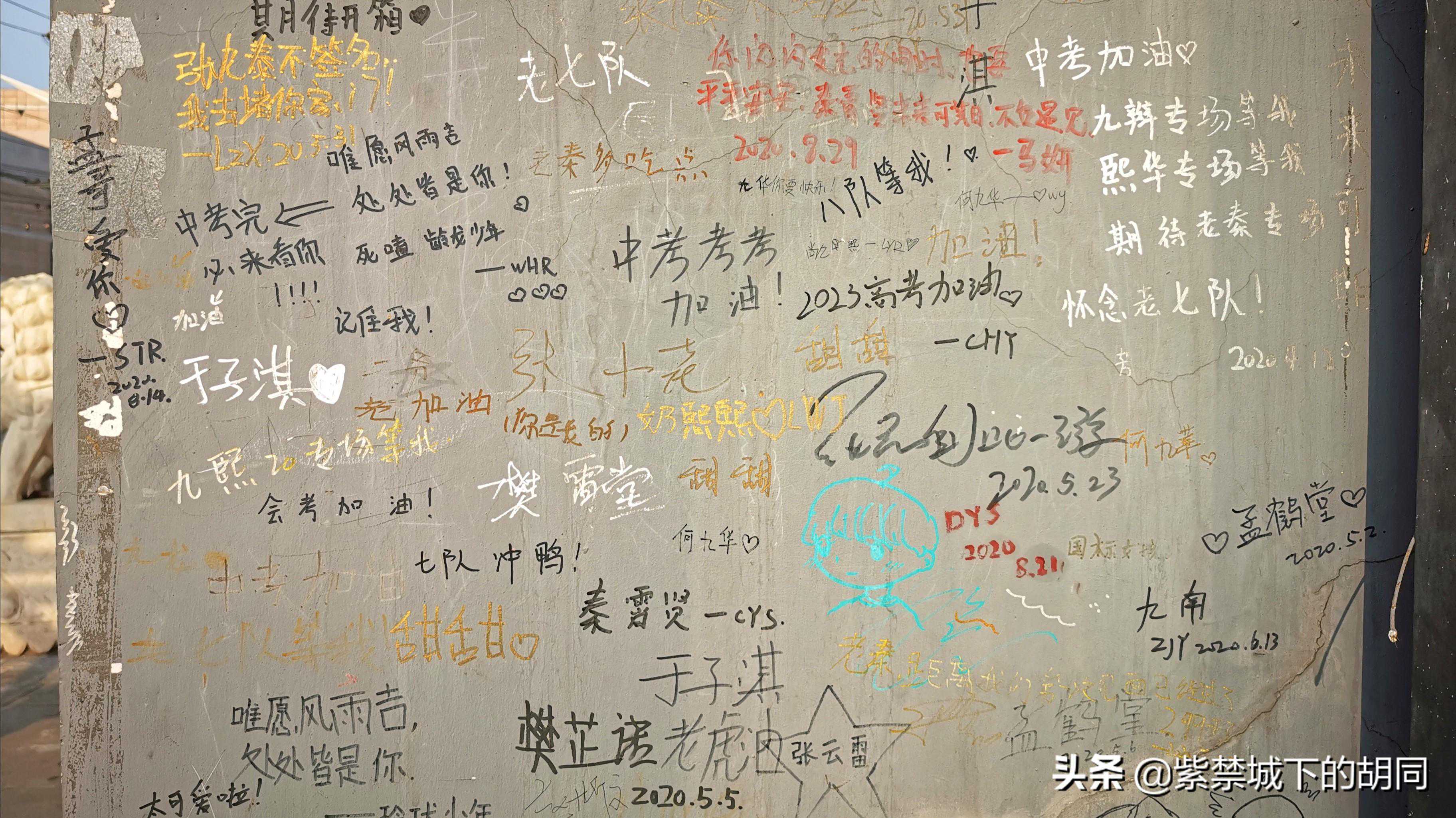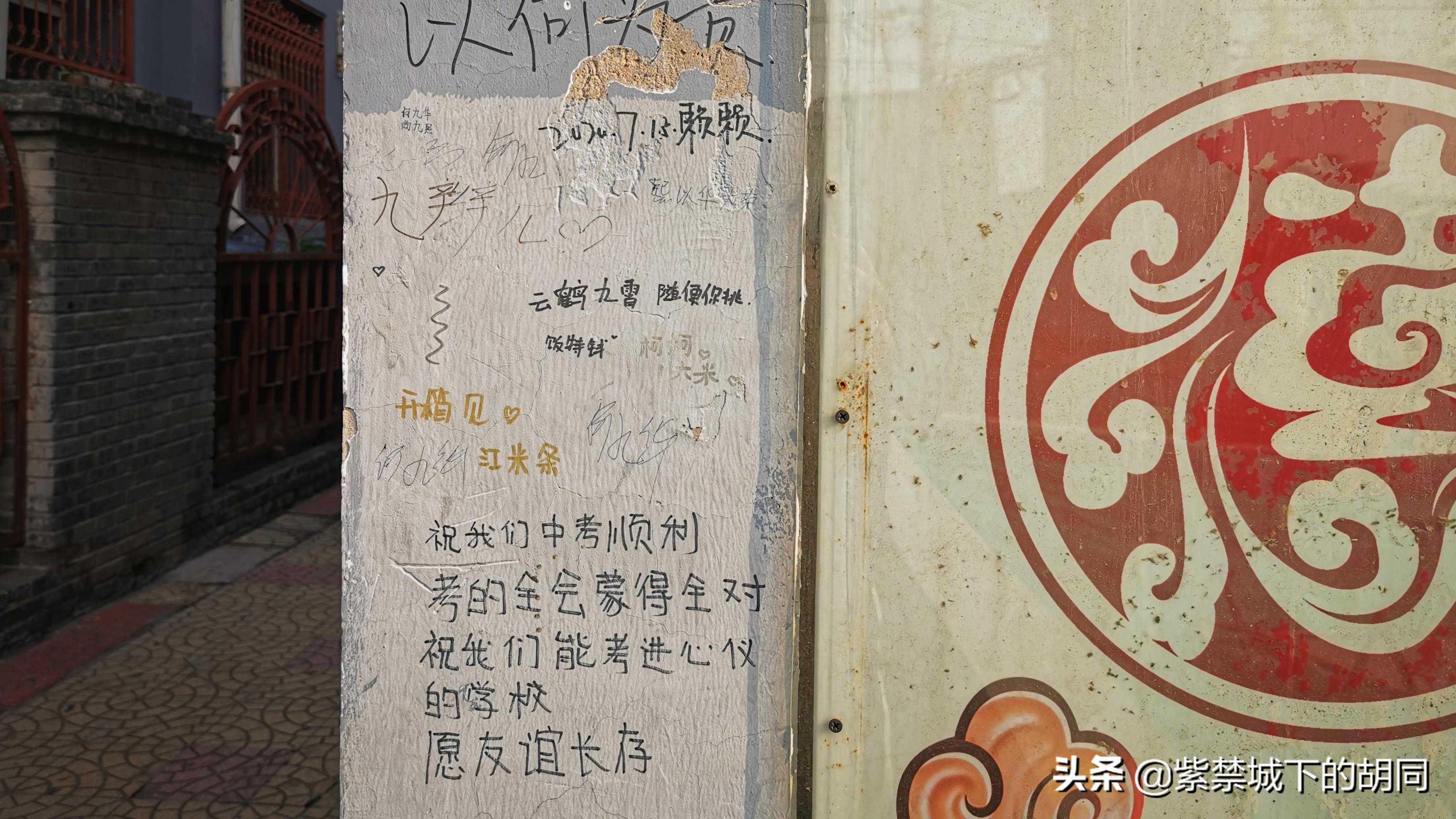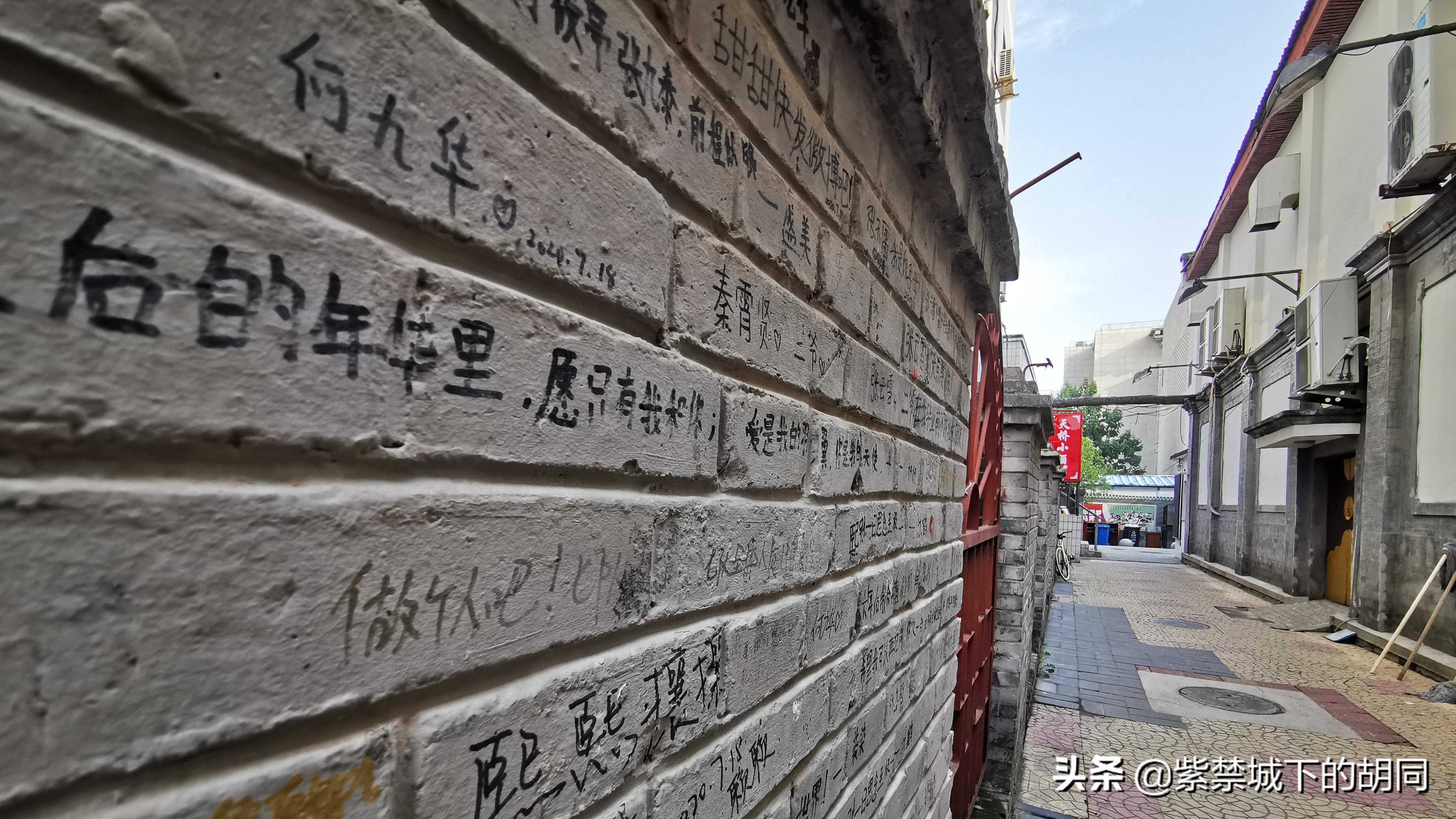 天桥德云社位于老宣武北纬路甲1号,是始建于一九三三年的天乐戏院改建而成,1992年经翻修改建天桥乐茶园,总建筑面积1300平方米,可同时接待300余人。剧场从外观看像个老厂房,平淡无奇,今日走近德云社,两件事让我感到意外,一是,一下被墙上的涂鸦留言所吸引,粉丝各种心情的表达,感觉很接地气,细看真挺有意思,这也是一种特有文化现象的表现,这是在其它场所难见到的,让人有一种亲近感。二是,由于一早过来就我一个人,正在细看墙上留言,看见两位年轻姑娘过来,说笑着看着墙上留言,然后在这里各种拍照,后来与两位姑娘一聊天才知道是德云社的铁粉,是从香河赶过来听八队相声的,让我很是惊奇。