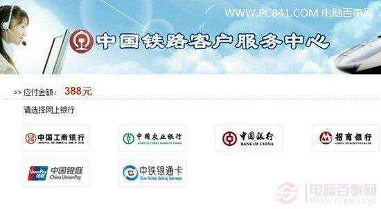 确认订单后是需要付款后,才正式生效的,并且上一步有明确提示,支付时间大约有30分钟,这些之间也足够你使用网银来完成支付。因此网上购票需要提前开通好网上银行,关于如何开通网上银行,这里不介绍了,只要是各大知名银行卡都可以前往营业厅办理开通网上银行。需要注意的是中国铁路客服服务中心订票系统目前只支持少数的几个网上银行。不支持支付宝、财付通等网友常用的支付工具。如果没有看到自己的那家网上银行,那就只能选择中国银联,这也给众多用户带来了一定的不便,如下图。