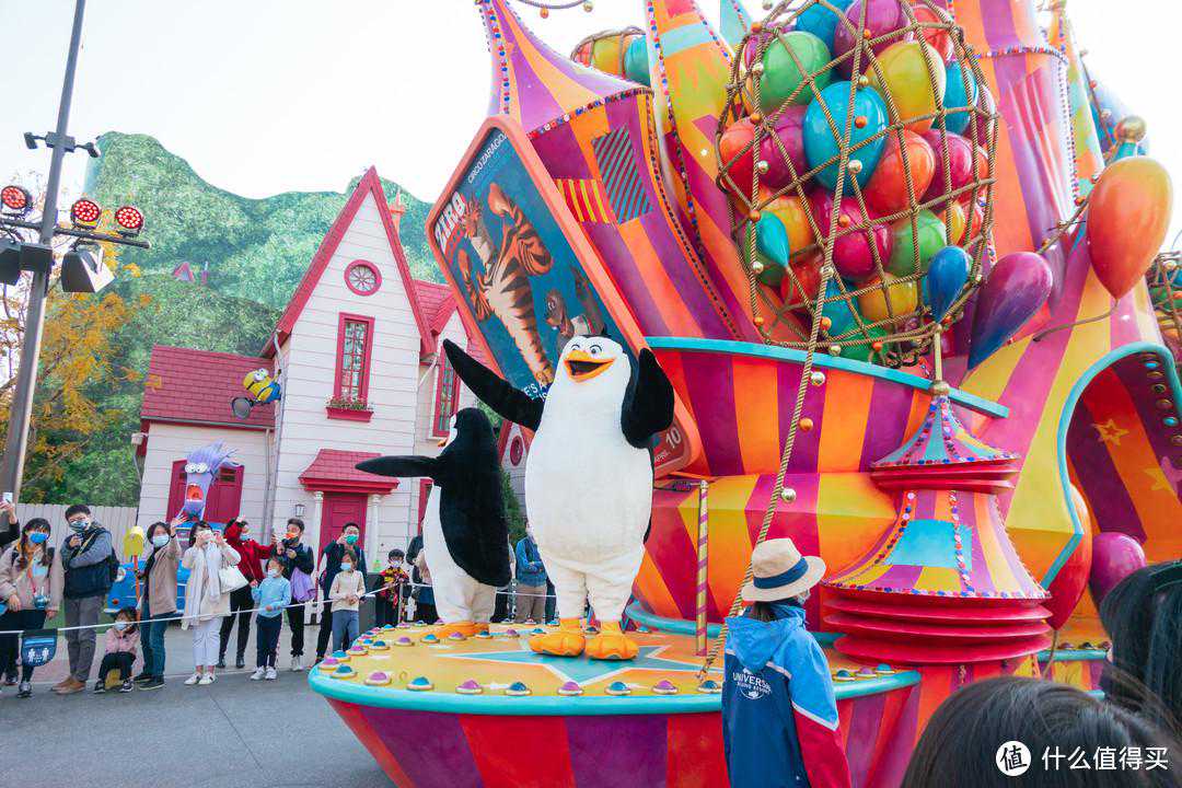 和小黄人合影之后,出来看到一个巡游的尾巴。是马达加斯加和功夫熊猫的花车。很欢乐呀。不会像网上有些人说的很无趣。而且巡游的演员们都有很努力的表演。