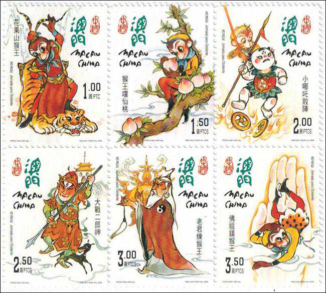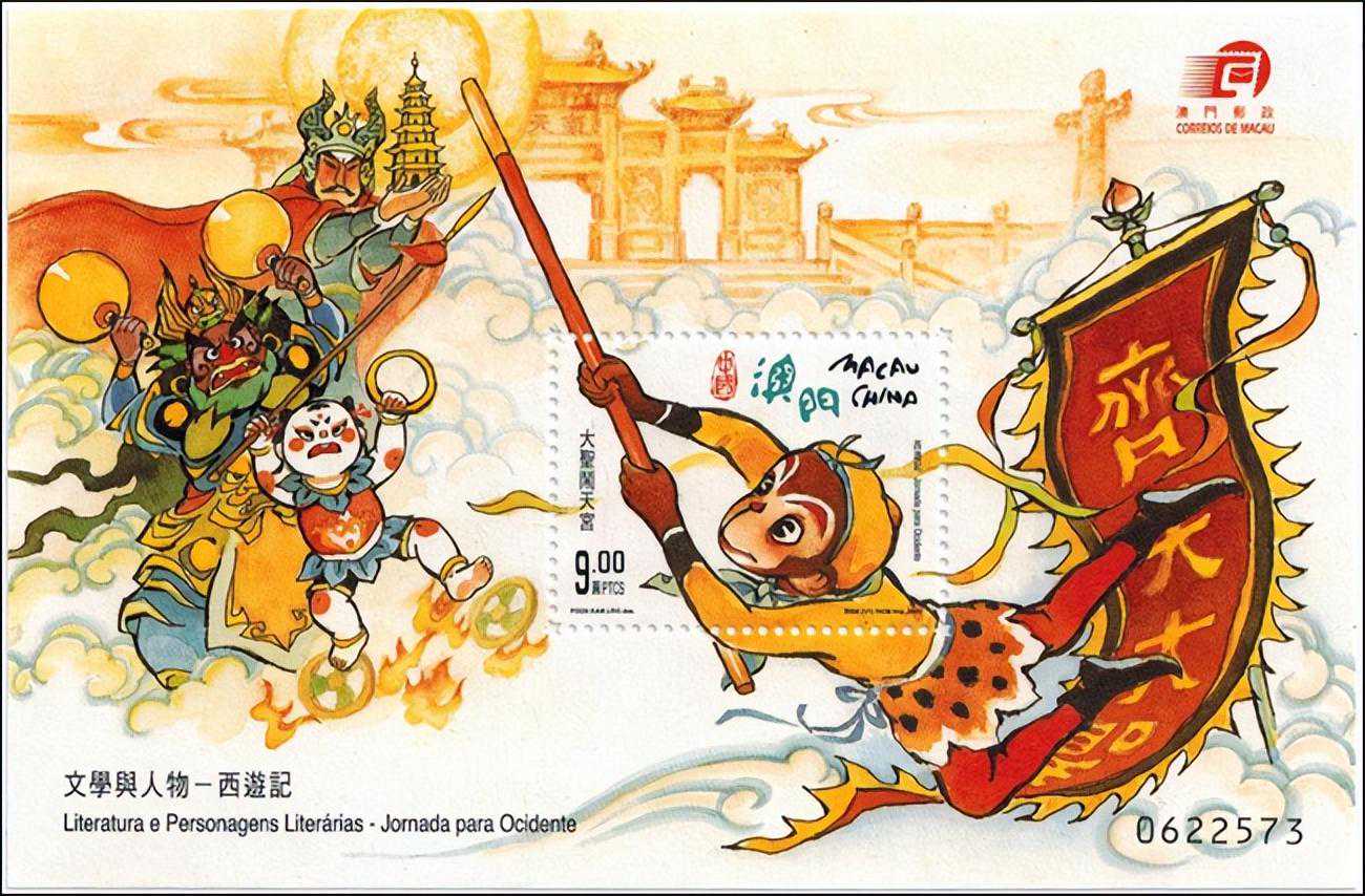 2000年9月30日,回归后的澳门邮政局发行了《文学与人物——西游记》(一)邮票,全套6种及小型张。