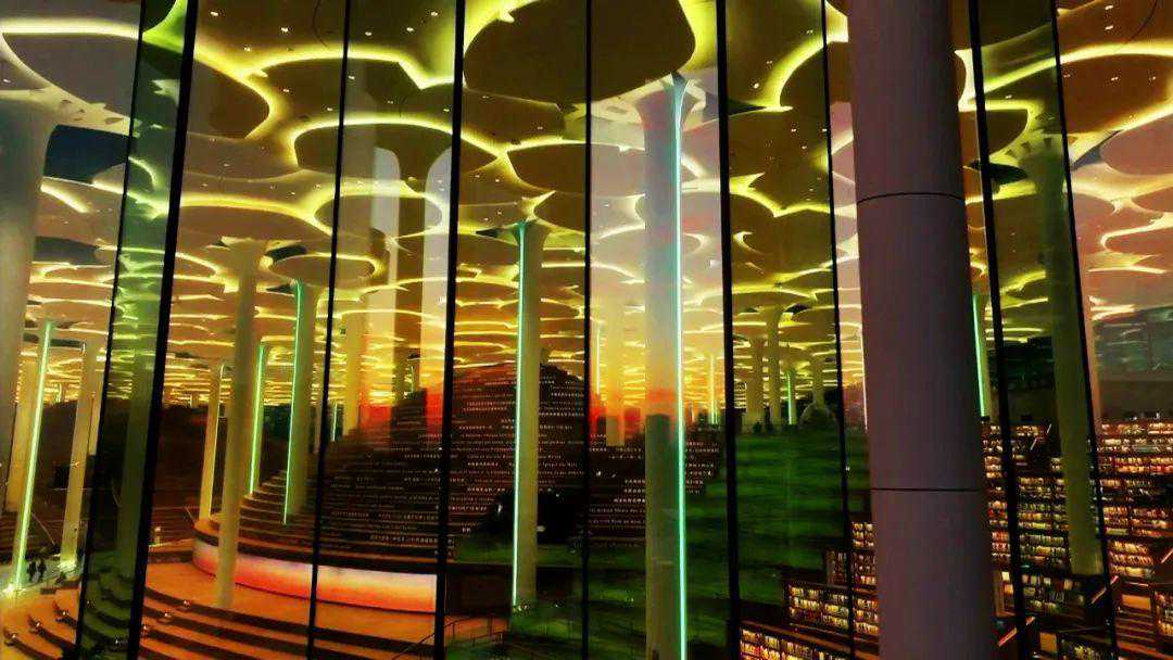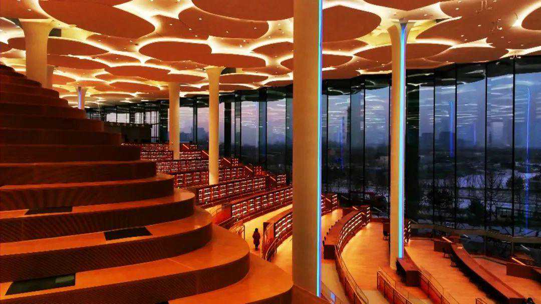 馆内建有世界最大的单体图书馆阅览室、国内藏量最大的智能化立体书库、国内第一家综合性非遗文献阅览空间、国内最专业的艺术文献馆、国内面积最大的少儿室外阅读活动空间和元宇宙体验馆,读者身处世界最大的图书馆阅览室之中,超高通透的玻璃幕墙让自然与建筑融为一体,读时可观景,读时亦成景;两座书山宏大绵延,登高可望远,倚树可驻足;闪动的知识山丘,展示知识文汇和数字图景,让读者在仰望间感受文脉传承的震撼,体味阅读的雅韵。