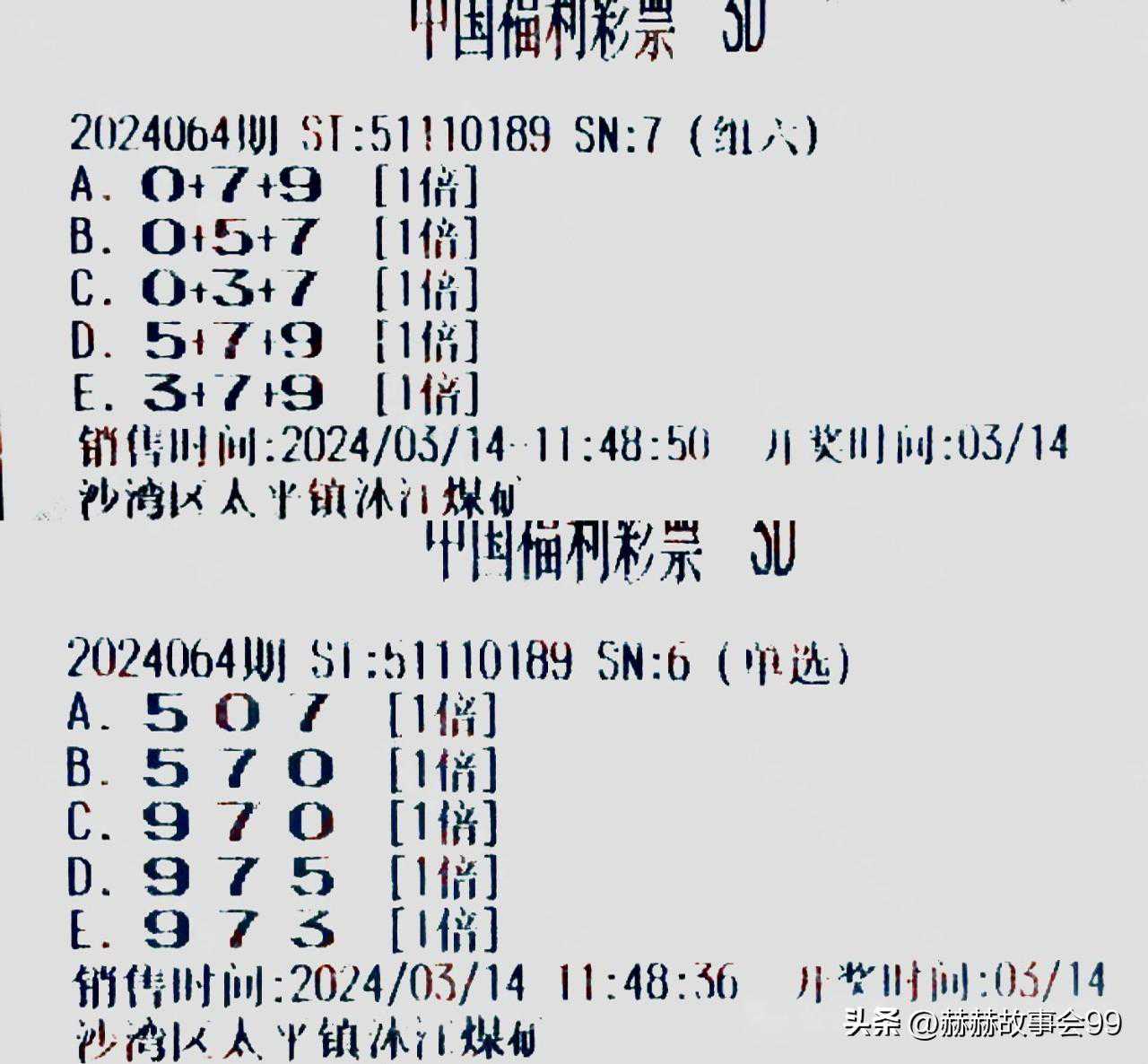 下面发布24064期福彩3D晒票,每天创作不易,喜欢的一样要帮忙点个赞支持一下!爷爷在一次清醒的时刻,提出要见我妈妈,我的妈妈十年前就离开了我们,和别的男人走了,从此再也没有回来过。