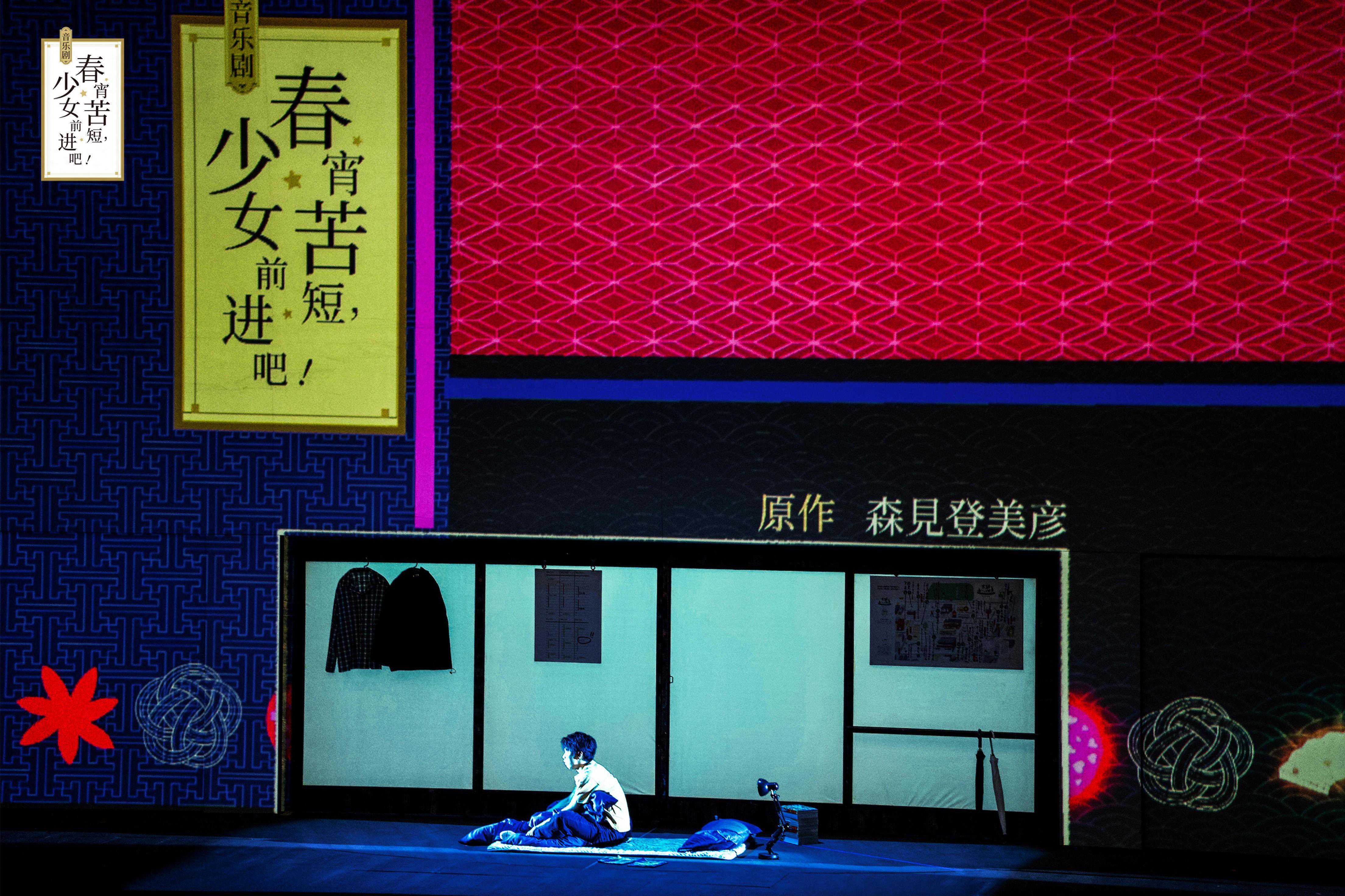 近日,中文原创音乐剧《春宵苦短,少女前进吧!》在上海人民大舞台迎来首演。该剧改编自森见登美彦的同名原作,讲述了一个温暖可爱奇幻的单恋故事。黑发可爱少女无畏地大步前行,而一心仰慕少女却无缘成为故事主角的男子则踉踉跄跄地在她身后追逐,每每在已无前路之处,出现柳暗花明的转折,屡屡在心灰意冷之时,发现伊人正与自己四目交投。观众在这款难以归类的校园纯爱青春乱斗奇幻群像剧中,可以跟随着那位爱在心里口难开的学长跑遍京都、经历四季,一起欢笑、一起感动。