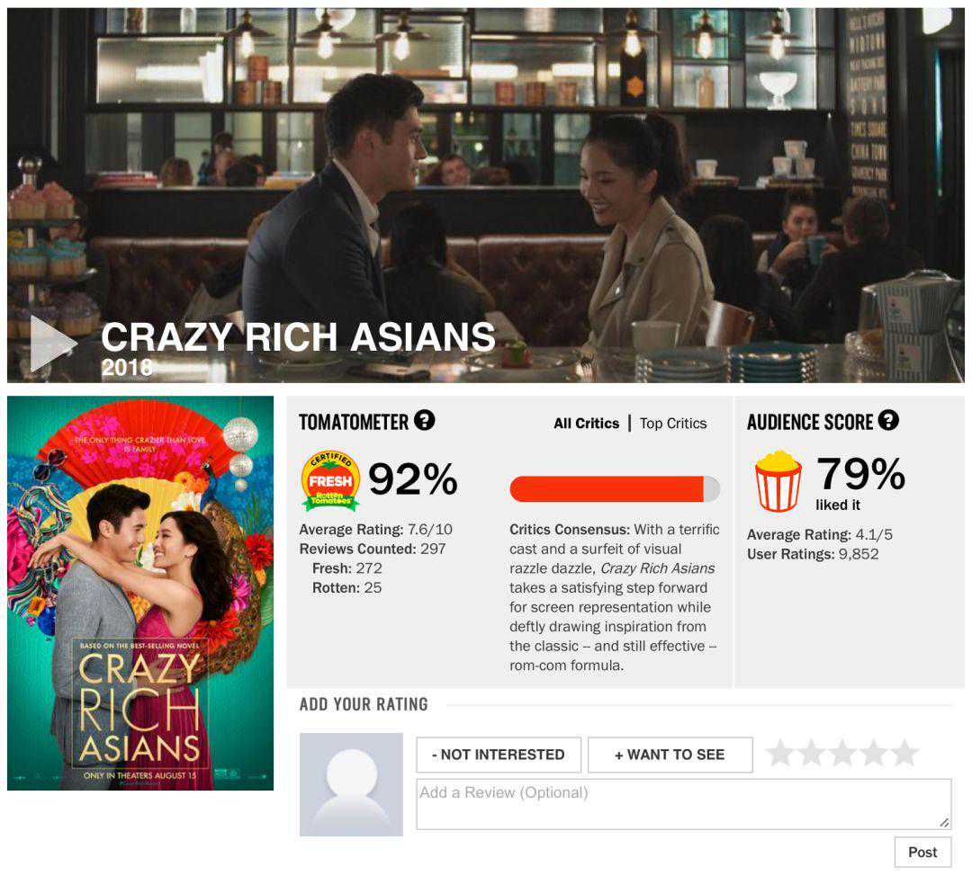 看这像极了讴歌奥运冠军的影片名字,竟然是从英文名《CrazyRichAsians》翻译过来的,不得不说还真是不如《疯狂的亚洲富豪》更吸引人。