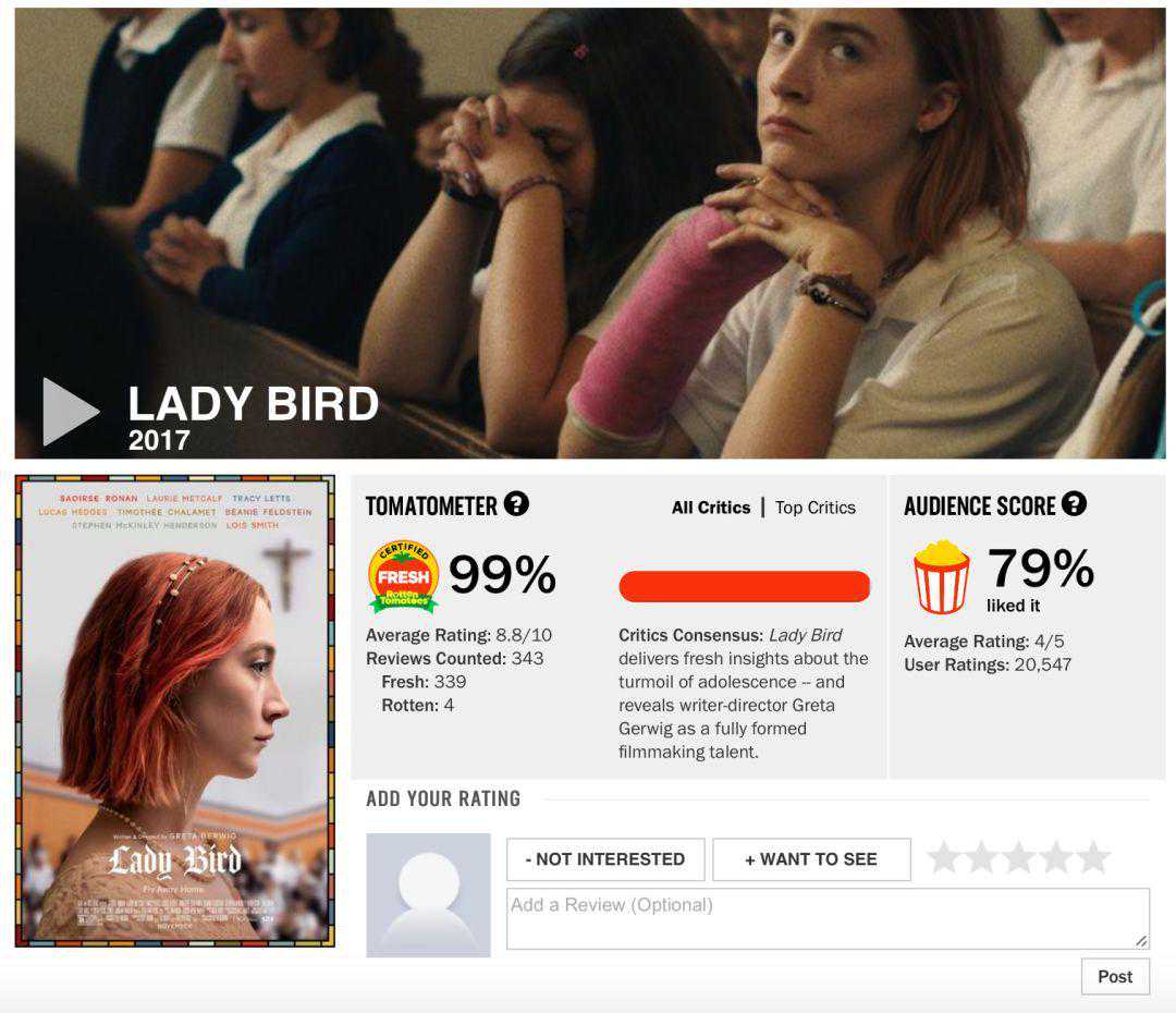 可是更让人大跌眼镜的是这部在国内始终不叫座的引进电影8月份在北美开画夺冠。《巨齿鲨》屈居第二,上映几周便斩获3400余万美元。不仅如此,烂番茄上口碑炸裂,92%好评率都快赶上差点得奥斯卡的“鸟小姐”《LadyBird》。