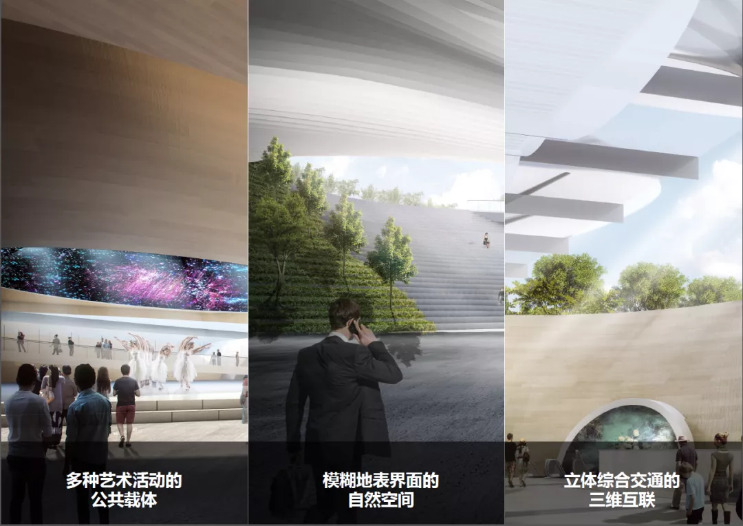 一是以歌剧厅、音乐厅、小歌剧厅、多功能沉浸式剧场四个厅为主的核心展演功能区,