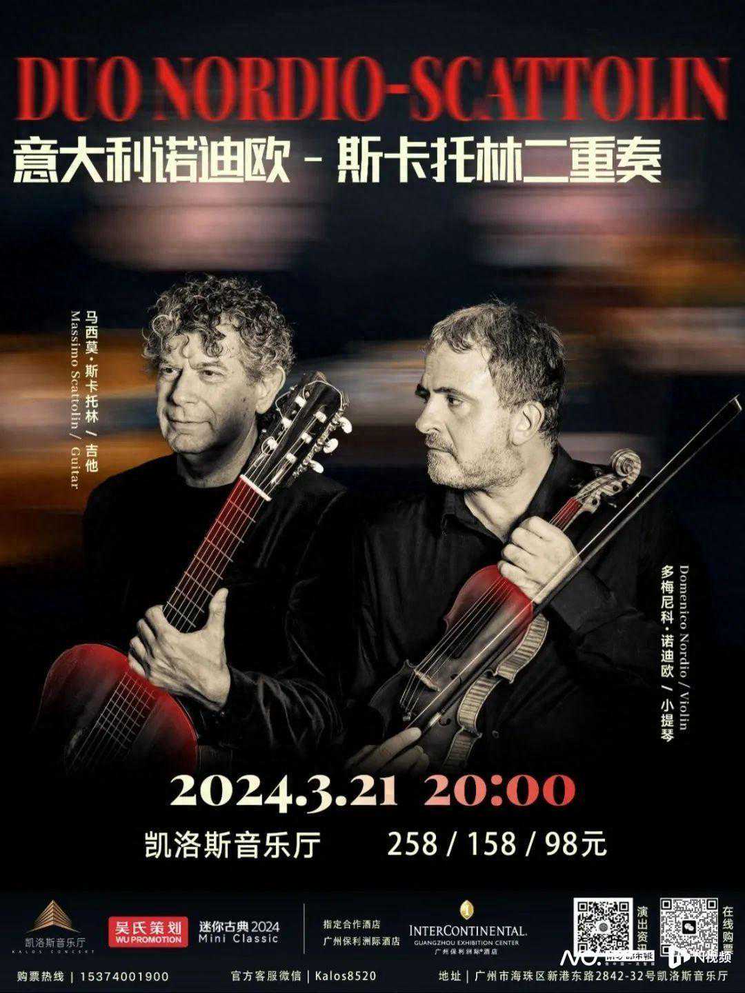 凯洛斯音乐厅联手吴氏策划,邀请到意大利知名艺术家诺迪欧、斯卡托林,开启中国首演广州首站的古典篇章。“当代最受瞩目的小提琴家之一”与“时代最好的吉他手之一”默契组合,演绎经典作品。