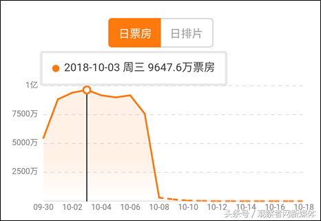 9月30号首映之后,10月1号迎来了票房高峰,之后一路走低……