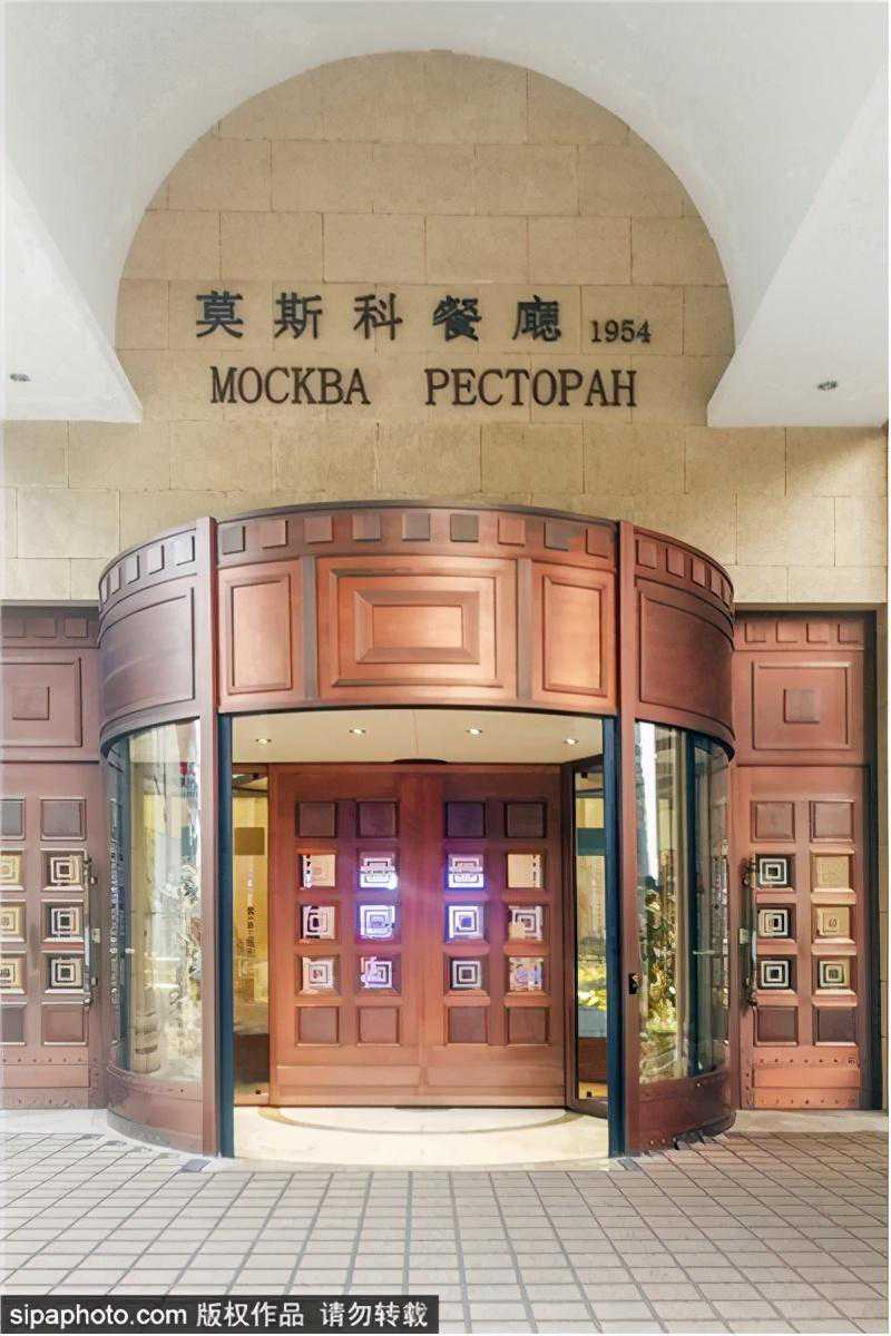 气派的“老莫”1954年伴随北京展览馆同时开业,当年《》这样记录:“大餐厅墙上挂着巨幅克里姆林宫油画,油画前有绿色的喷泉。餐厅四壁是嫩绿色大理石,明亮的大玻璃长窗上,垂着白色乔其纱和银灰色天鹅绒的窗帘。餐厅顶上是松枝、松果和雪花组成的石膏花饰。厅中间四根柱子上,包着铜片攒成的生气勃勃的鸟兽。”