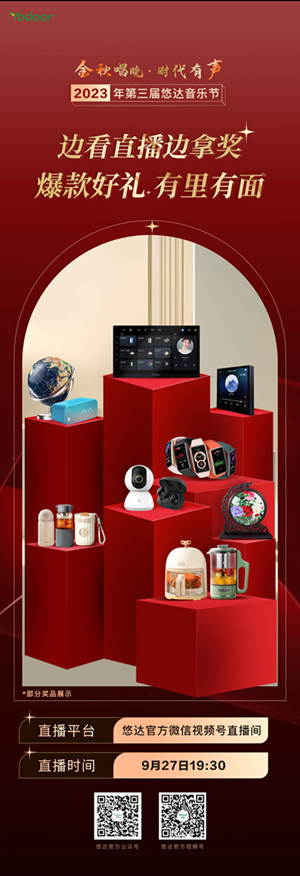 热闹之余,直播期间悠达的年度新品也将与大家轮番见面。比如稳定又耐用的Linux系列音乐主机,工程项目首选的Y1轨道型智能背景音乐,颜值与操作都充满惊喜的智能中控屏新UI,还有即将面世、性价比堪称一绝的i37L,这些各具特色的新品,都等着大家一窥究竟~